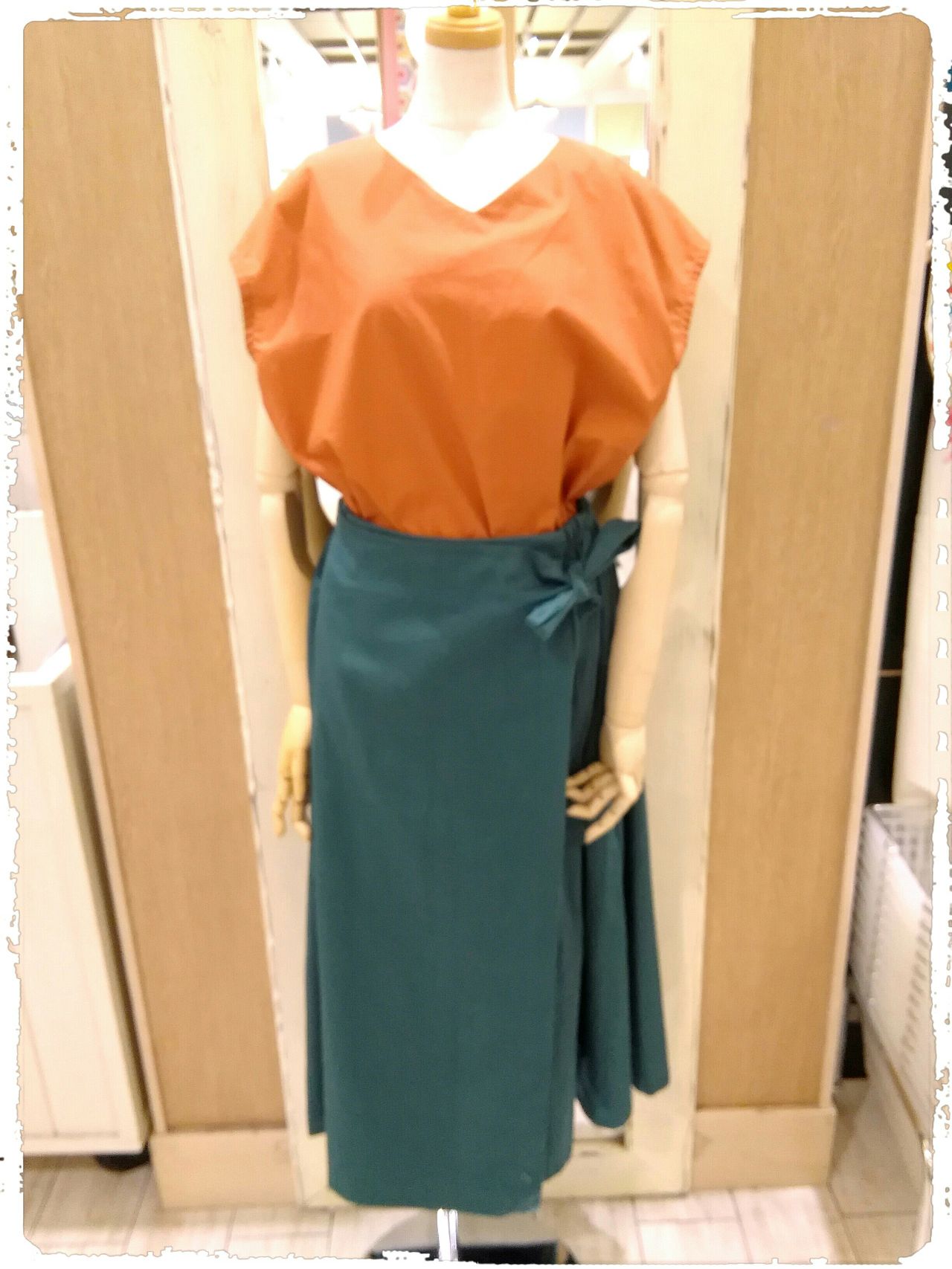 ㊤[ブラウス] ㊦[ラップ風台形スカート]