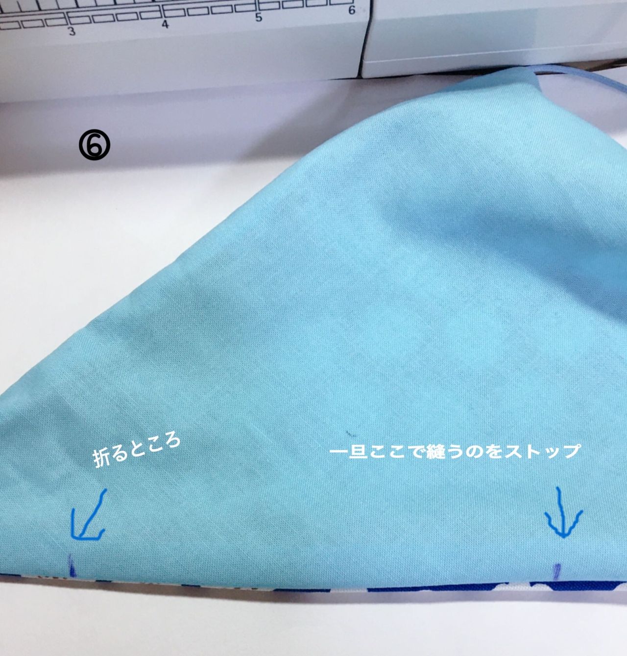 折った所との境目は厚みがあるので、ミシンの場合はゆっくりゆっくり。