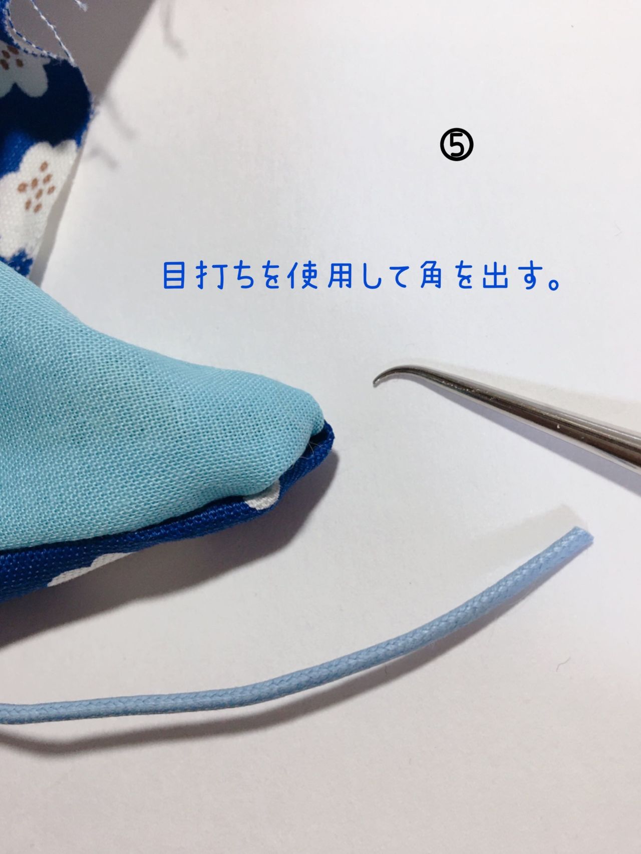⑤返し口からひっくり返し、全体を再びアイロンで整えます。