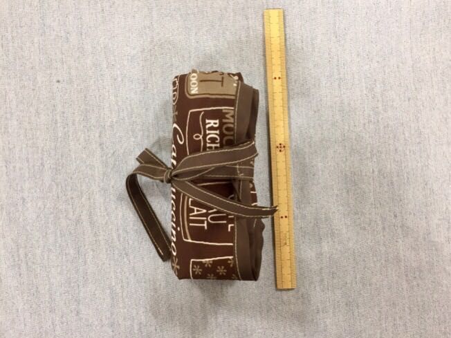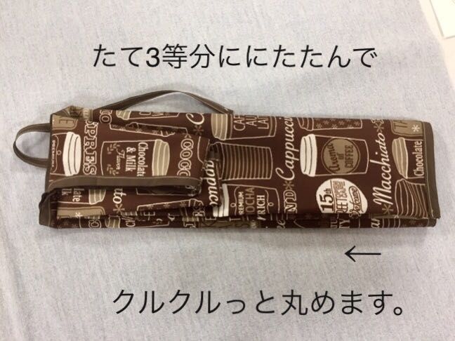 小さく持ち運ぶにはたて3等分にしてたたみ、下からクルクルと丸めます。