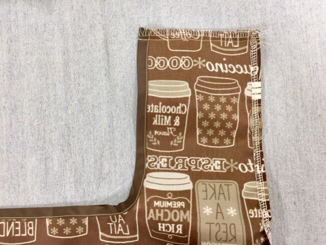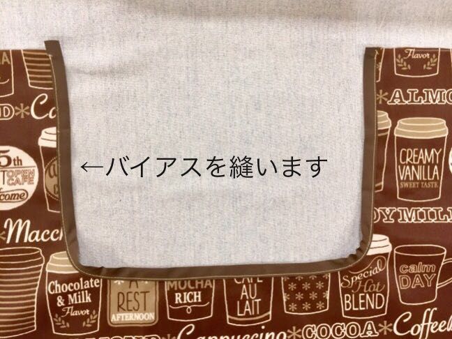 ⑦バイアスをつけます。バイアスをつけるときは面倒でもしつけをかけましょう。キレイに仕上がるコツです。