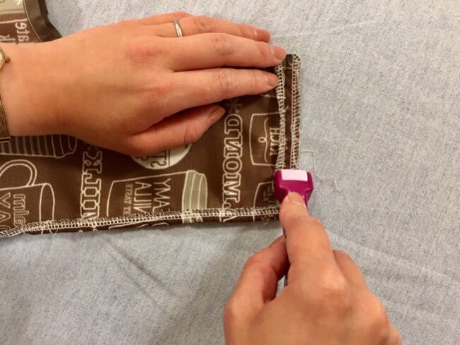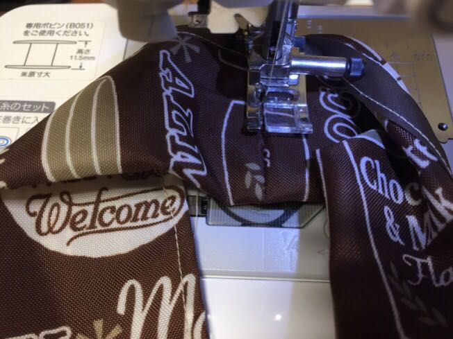 ③脇と持ち手に、ロックミシンまたはジグザグミシンをかけます。