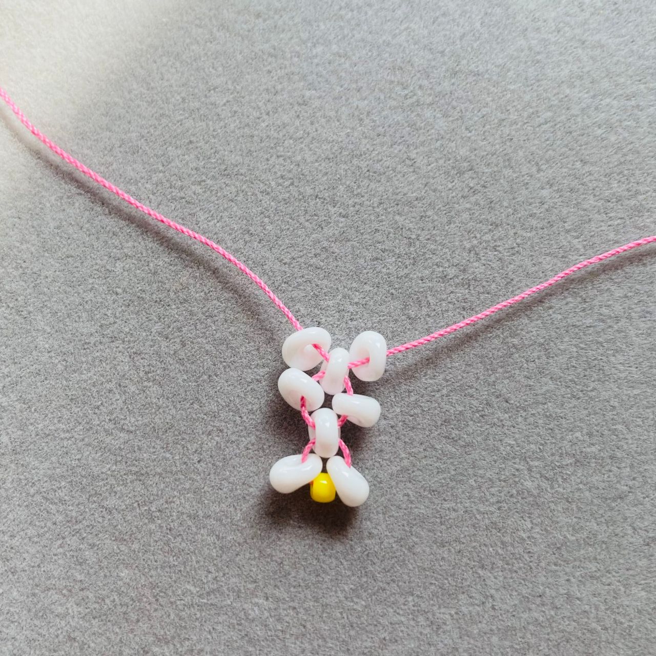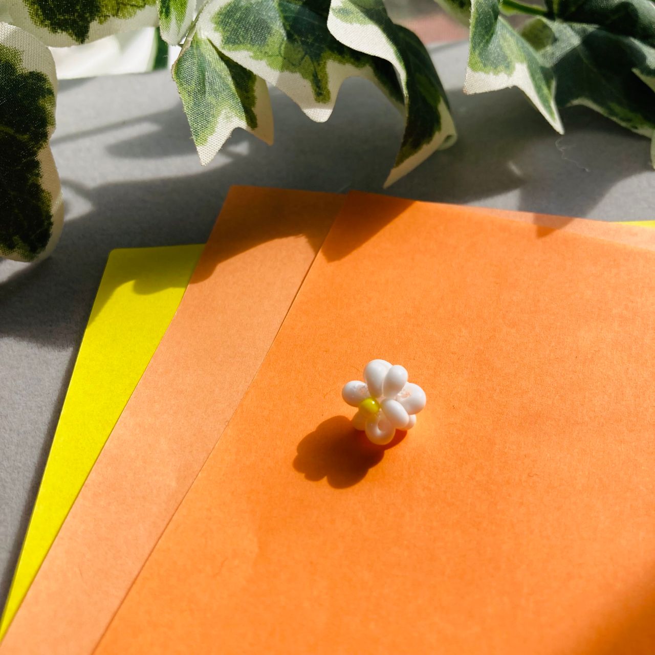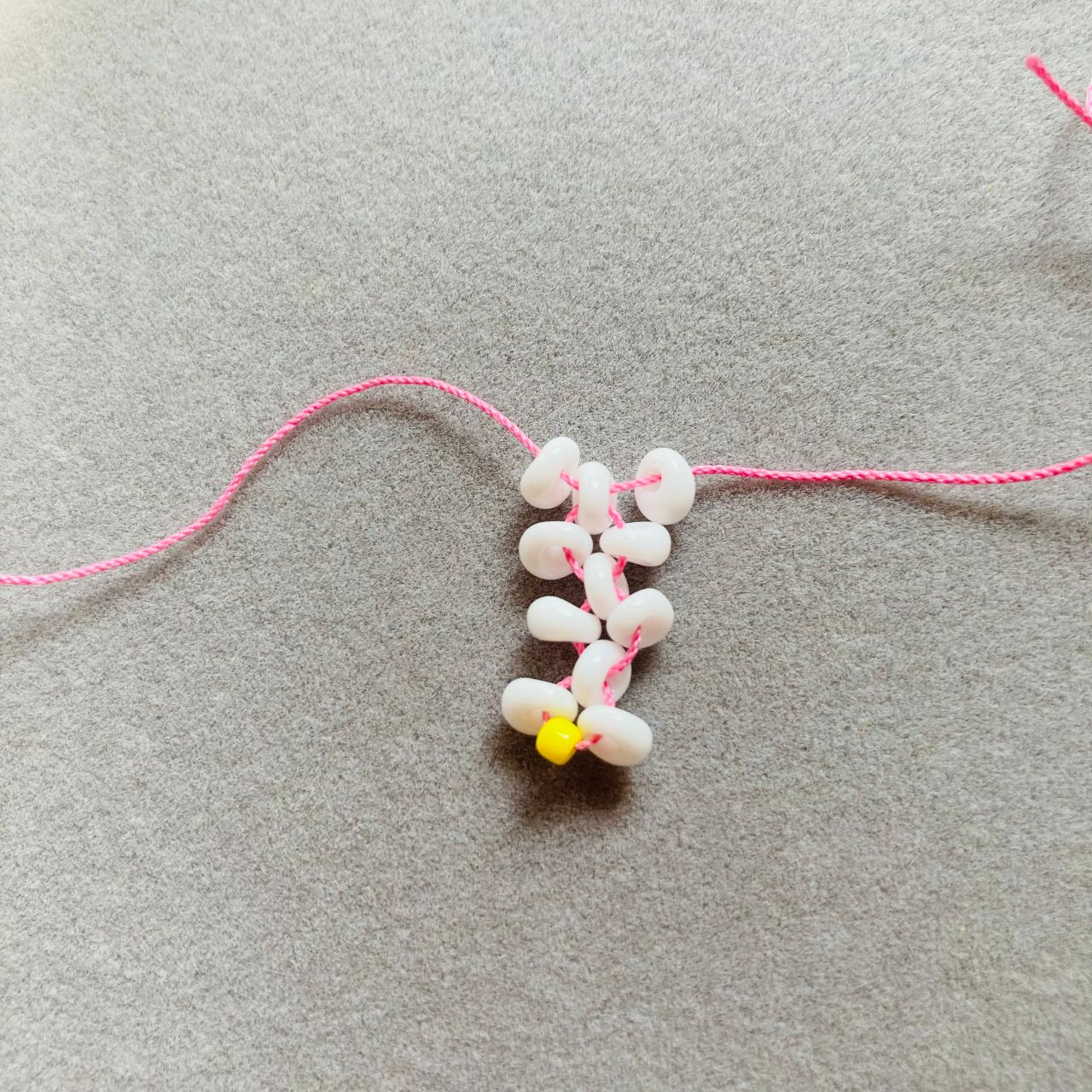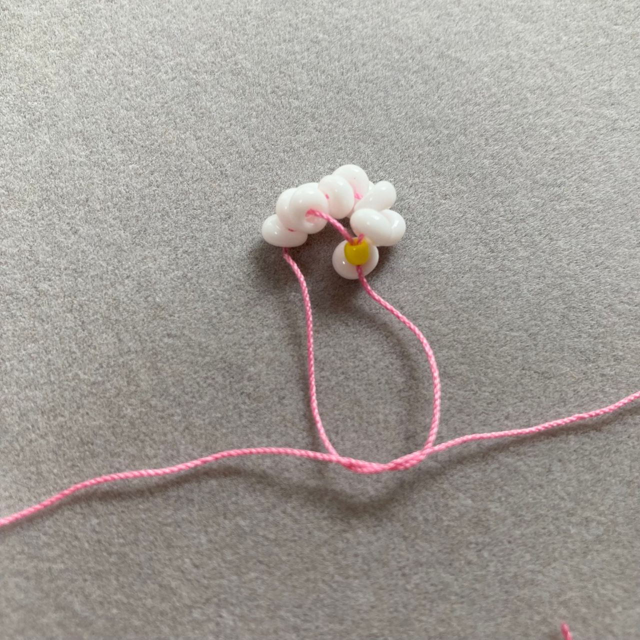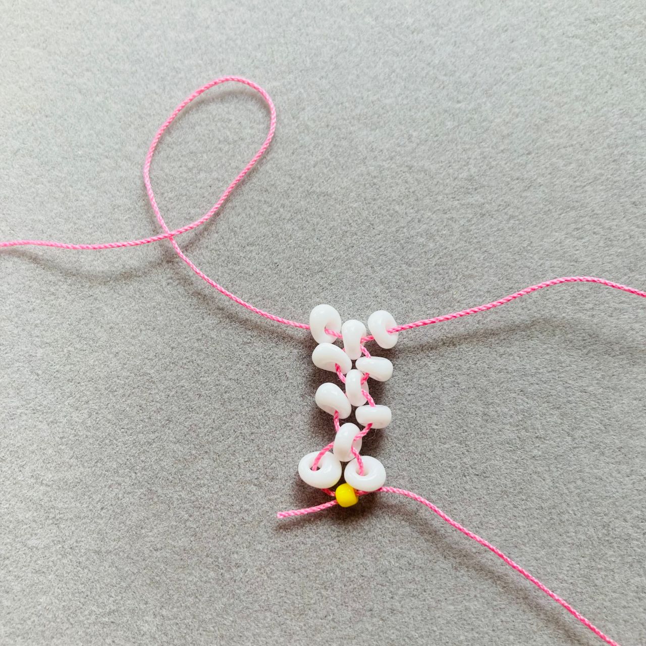 ホワイトのビーズ12個(以後ホワイトとします)とイエローのビーズ1個を用意しておく。