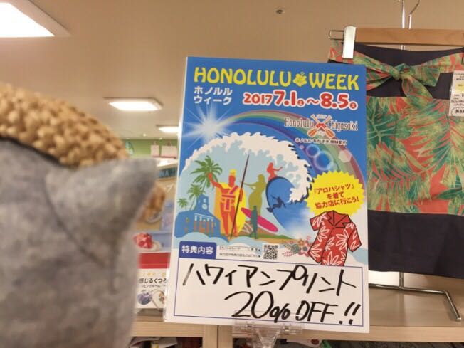 、、、アロハシャツを着ていると、ハワイアンプリント20%offになるんだって〜