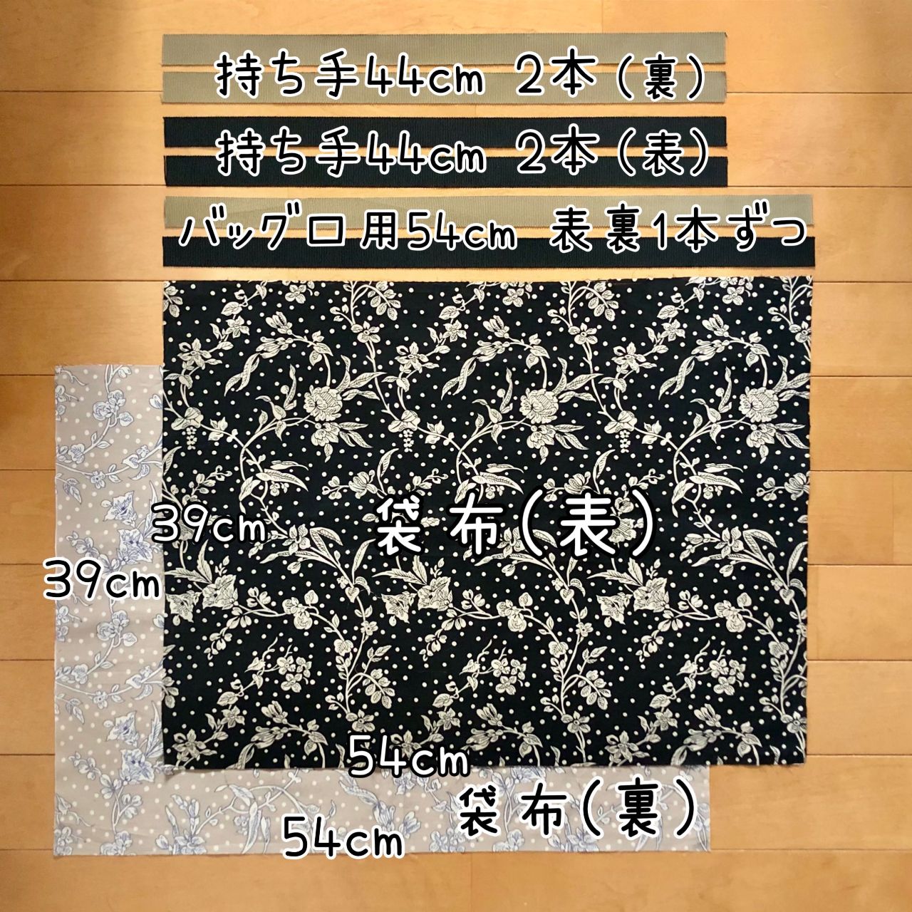 持ち手44cm×2本 + バッグ口54cm = 142cm