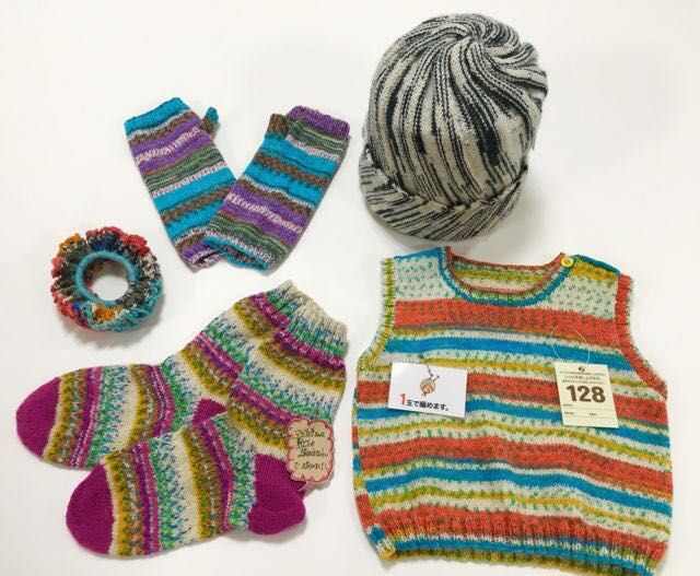 そのため、ネックウォーマーや手袋、靴下、帽子などの小物類は1玉で作れちゃいます。