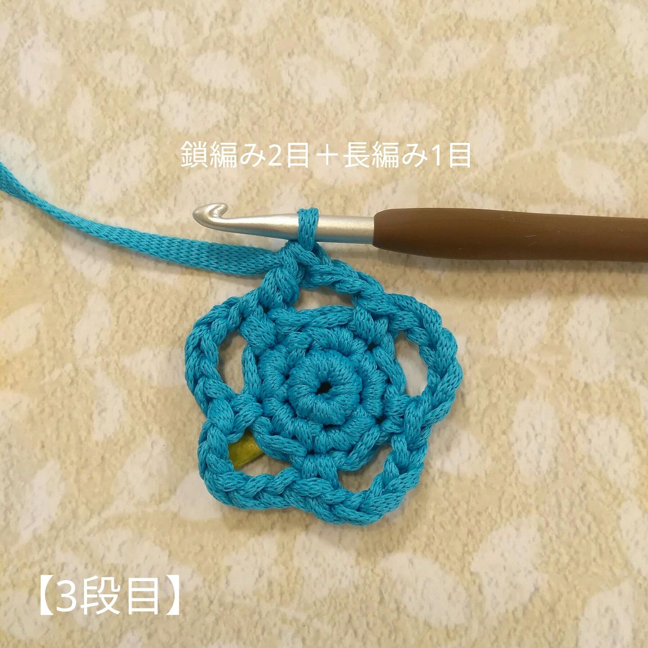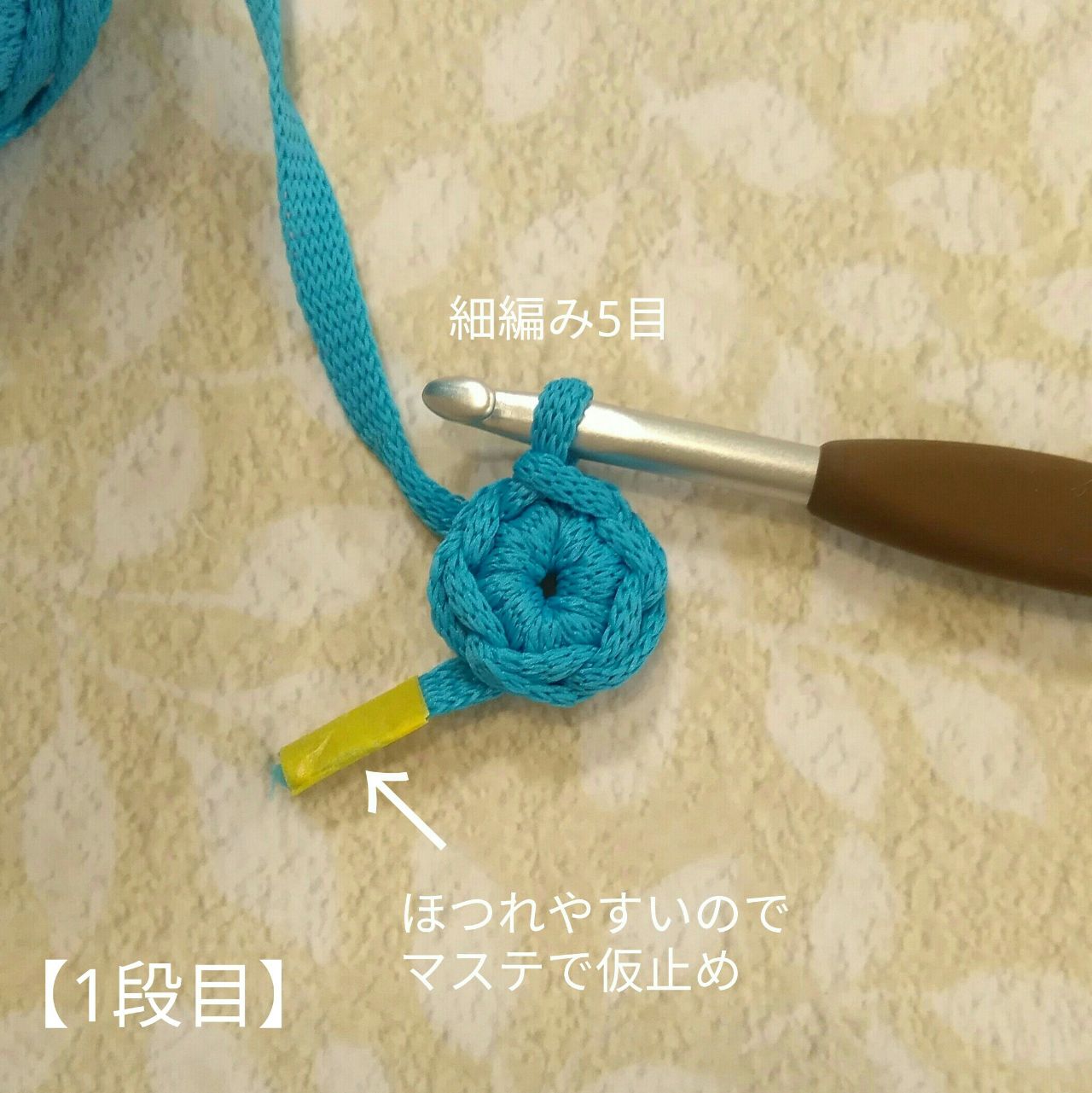 立ち上がりの鎖編み1目を編み、