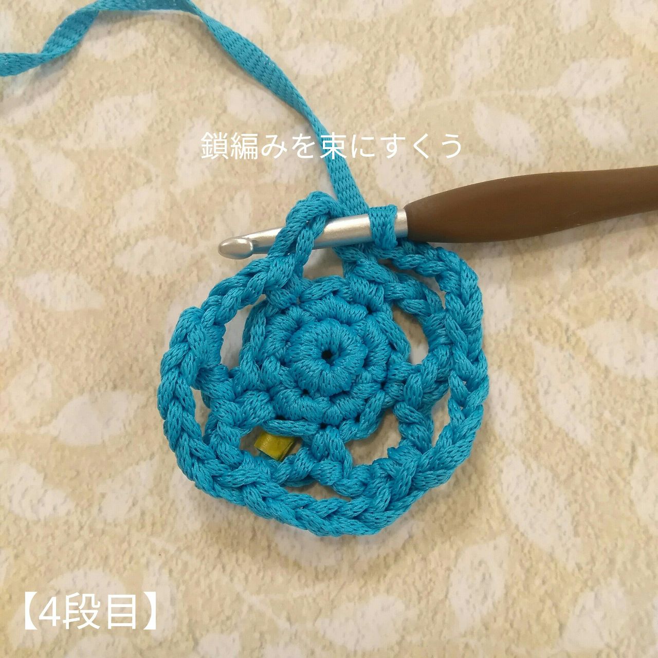 ④ 4回繰り返したら、鎖編み2目を編み、