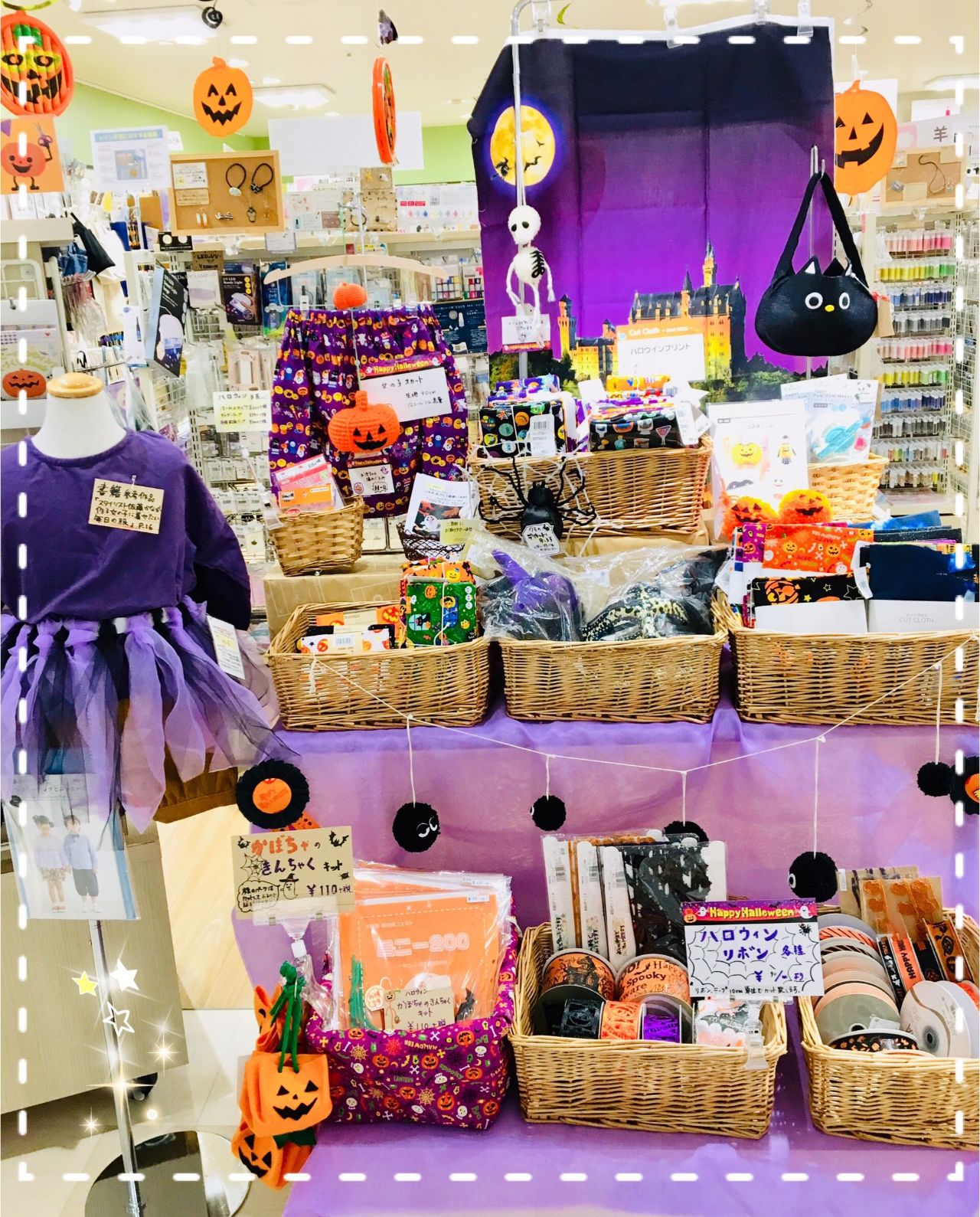 茅ヶ崎店ではお店に向かって左手がわにハロウィンの手芸材料のコーナーがございますよ♡