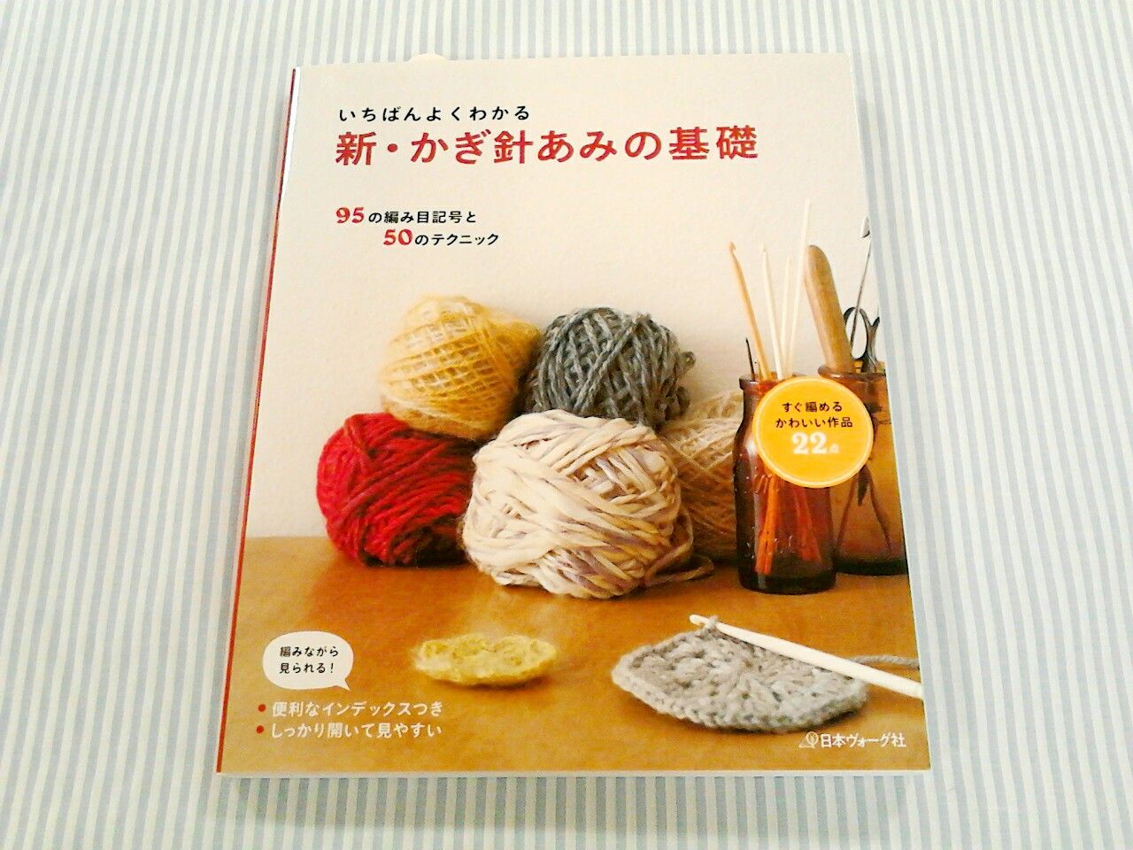 ちなみにわたくしこの本を片手に編み図記号と細編み、輪に編む編み方をマスターしてバッグを完成出来ました(^O^)