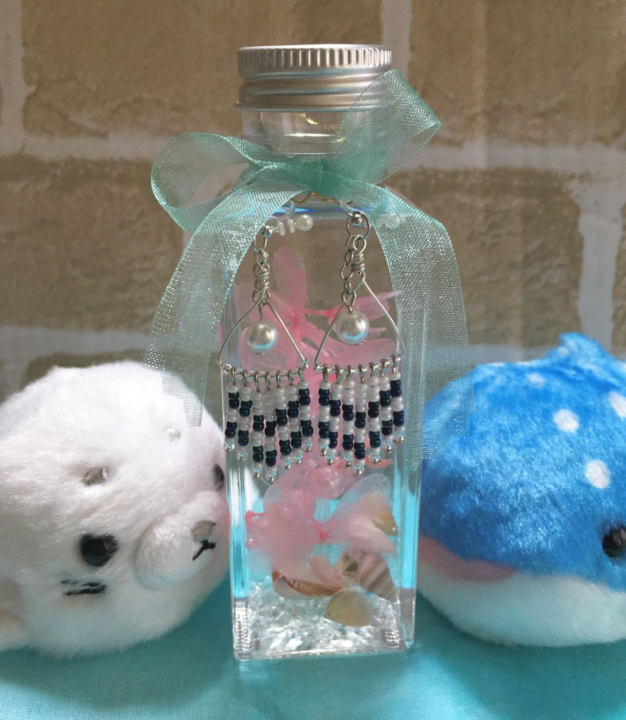 これだけでイヤリングにしてもいいのですが、今回コンは家にあったパールも付けてみました♬