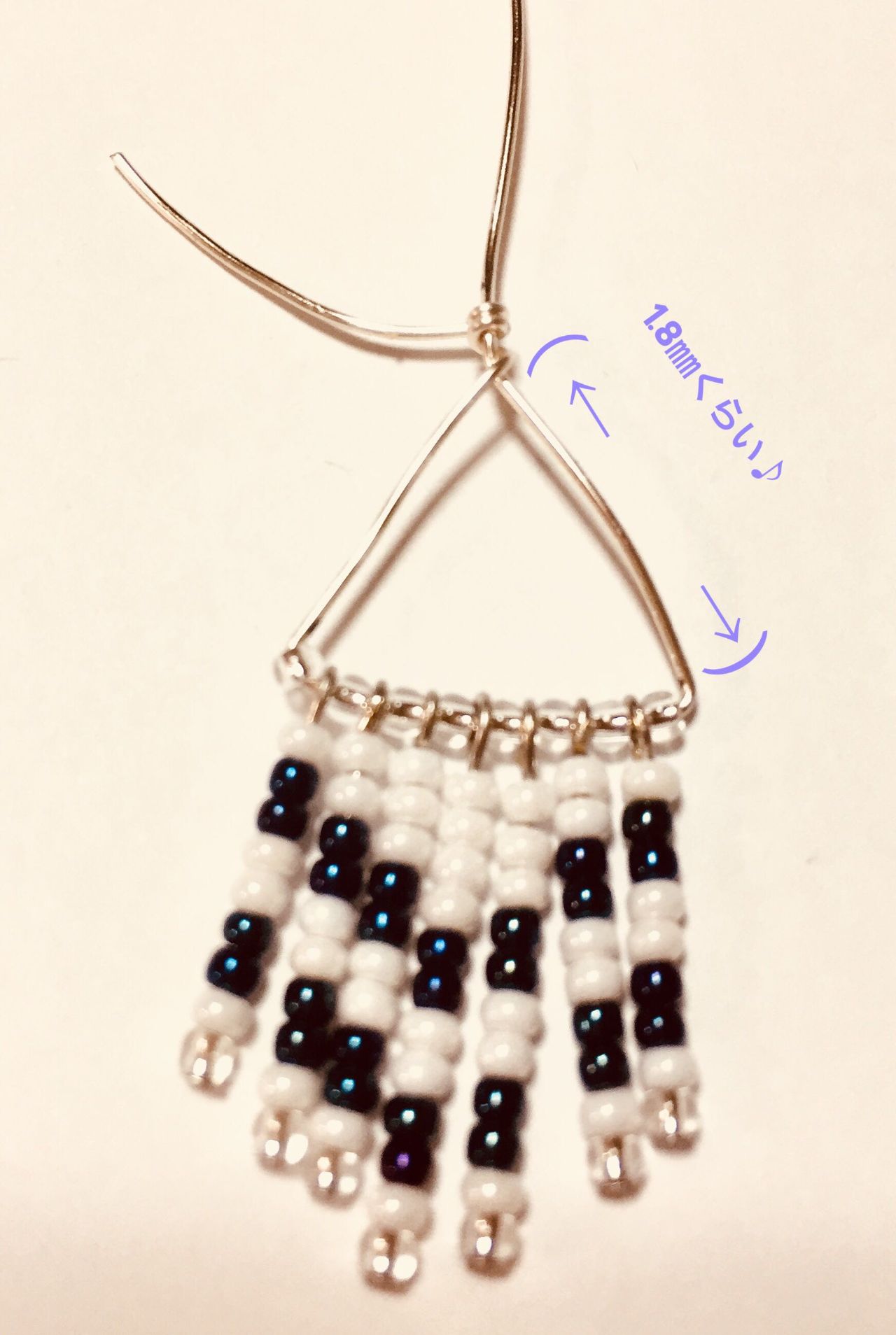 全てビーズを通し終わったら、通し終わったワイヤーも90度に曲げて、ワイヤーとワイヤーを合わせて三角の形にします(o^^o)
