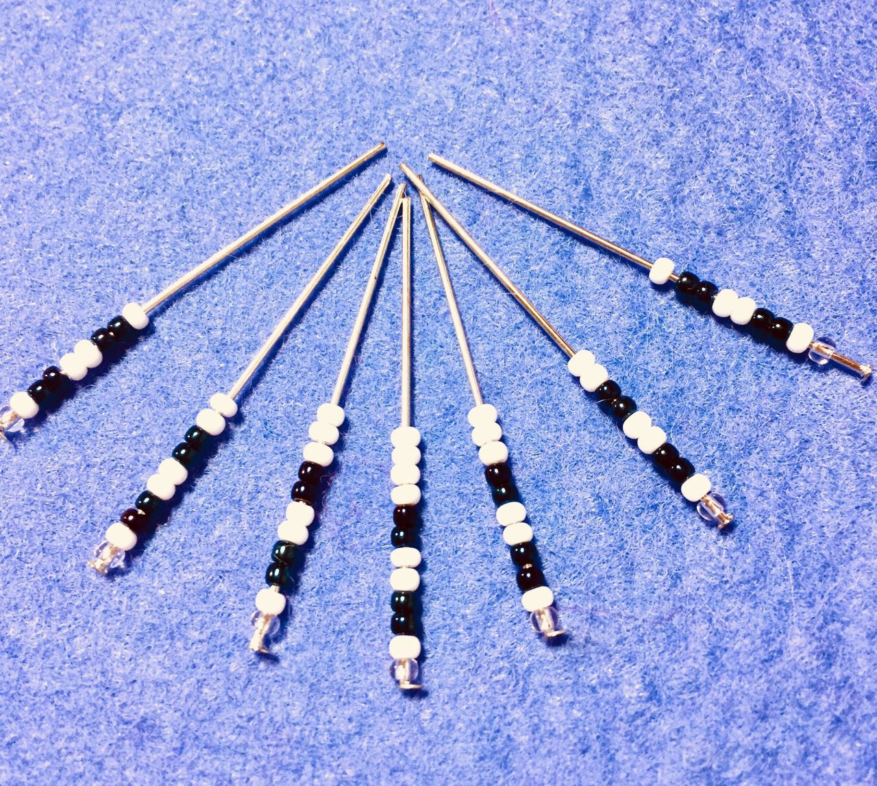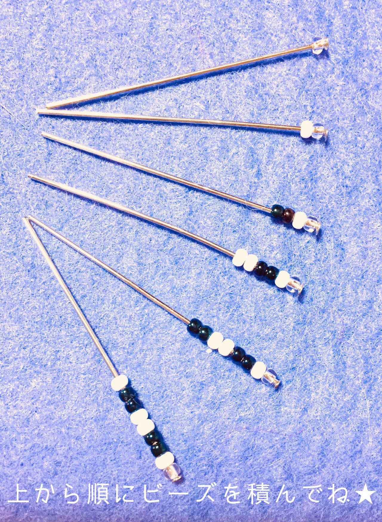 ピンの1番最後に付ける白いビーズですが真ん中に行く度に1つずつ増やしていきます。