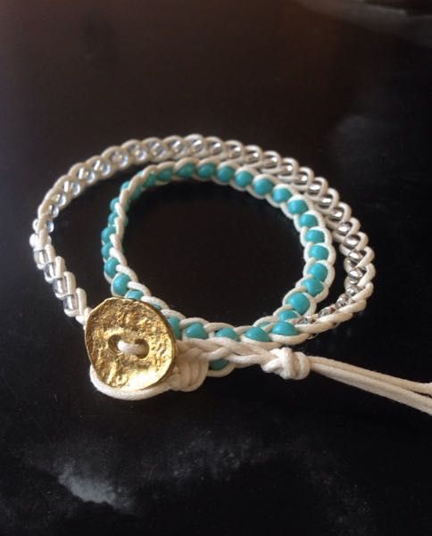 ビーズを通したコードを三つ編みして、簡単に作れるブレスレットの紹介デス。