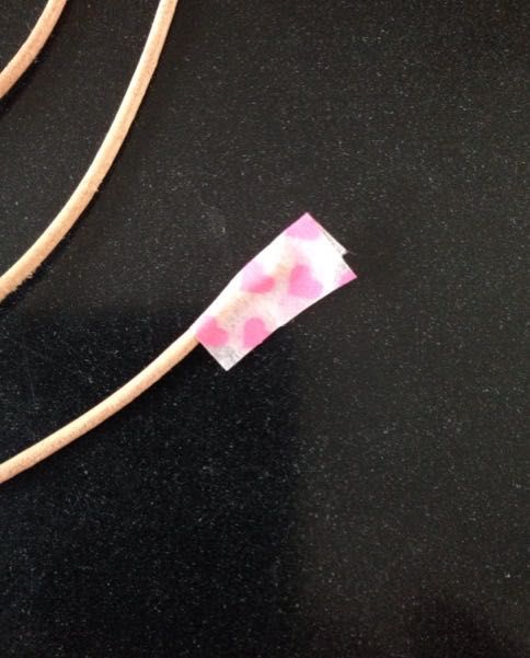 今回はそれぞれコードに22粒通しました。(ひも端はビーズが落ちないようにマスキングテープで留めておきます)