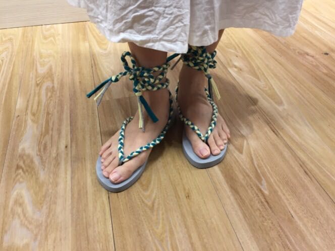 今大人気のズパゲッティで紐を作ります。結び方はいろいろあるのでその日の気分で楽しめるのがいいですよね。今年の夏はオリジナルのビーサン作ってみませんか?