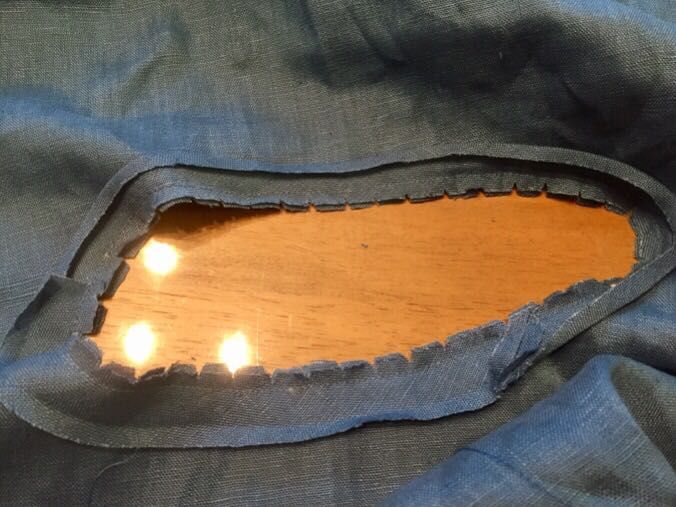 ⑤縫って縫い代を切り揃え、三角に切れ込み入れる。三角にすると縫い代が少なくなり、仕上がりがとっても綺麗になります。