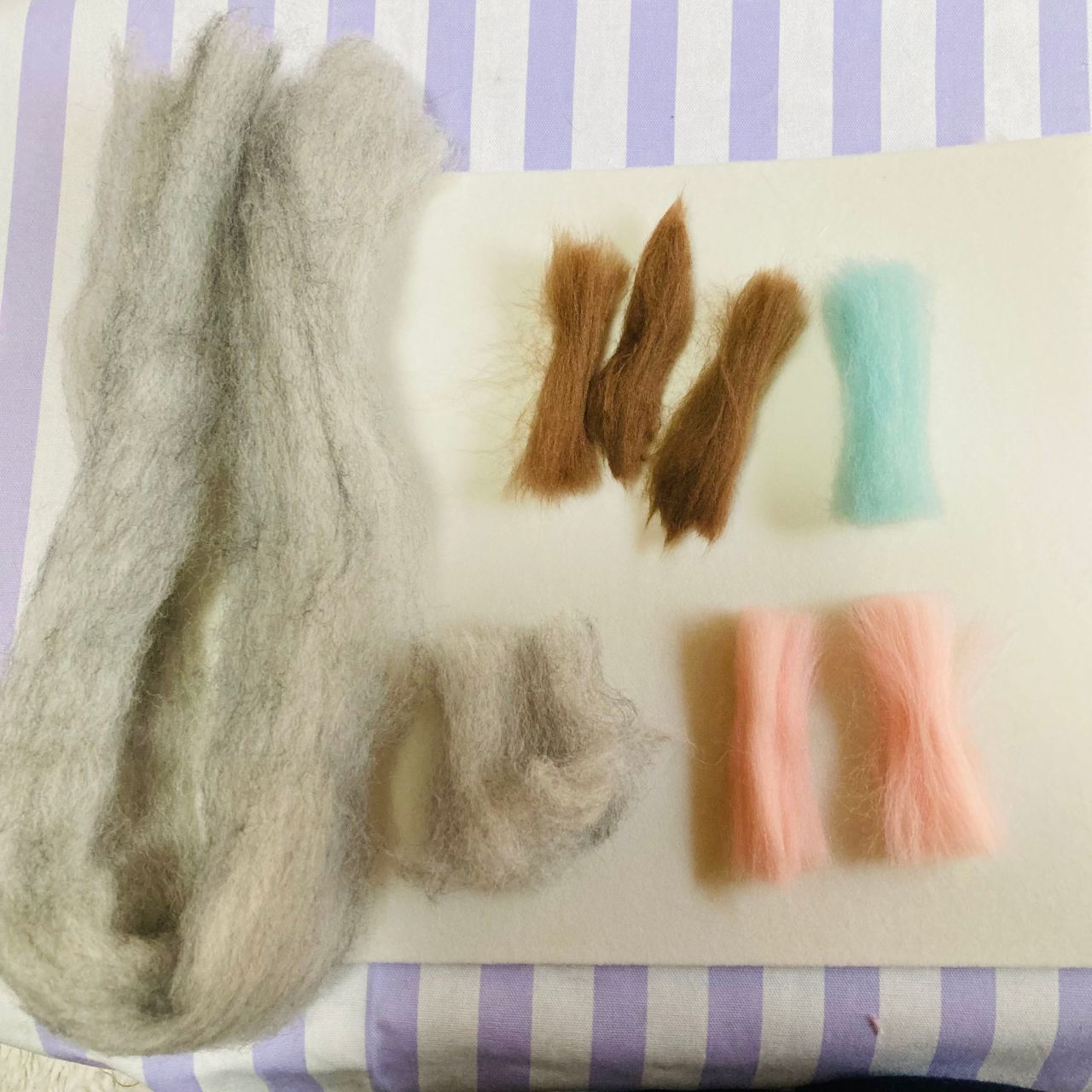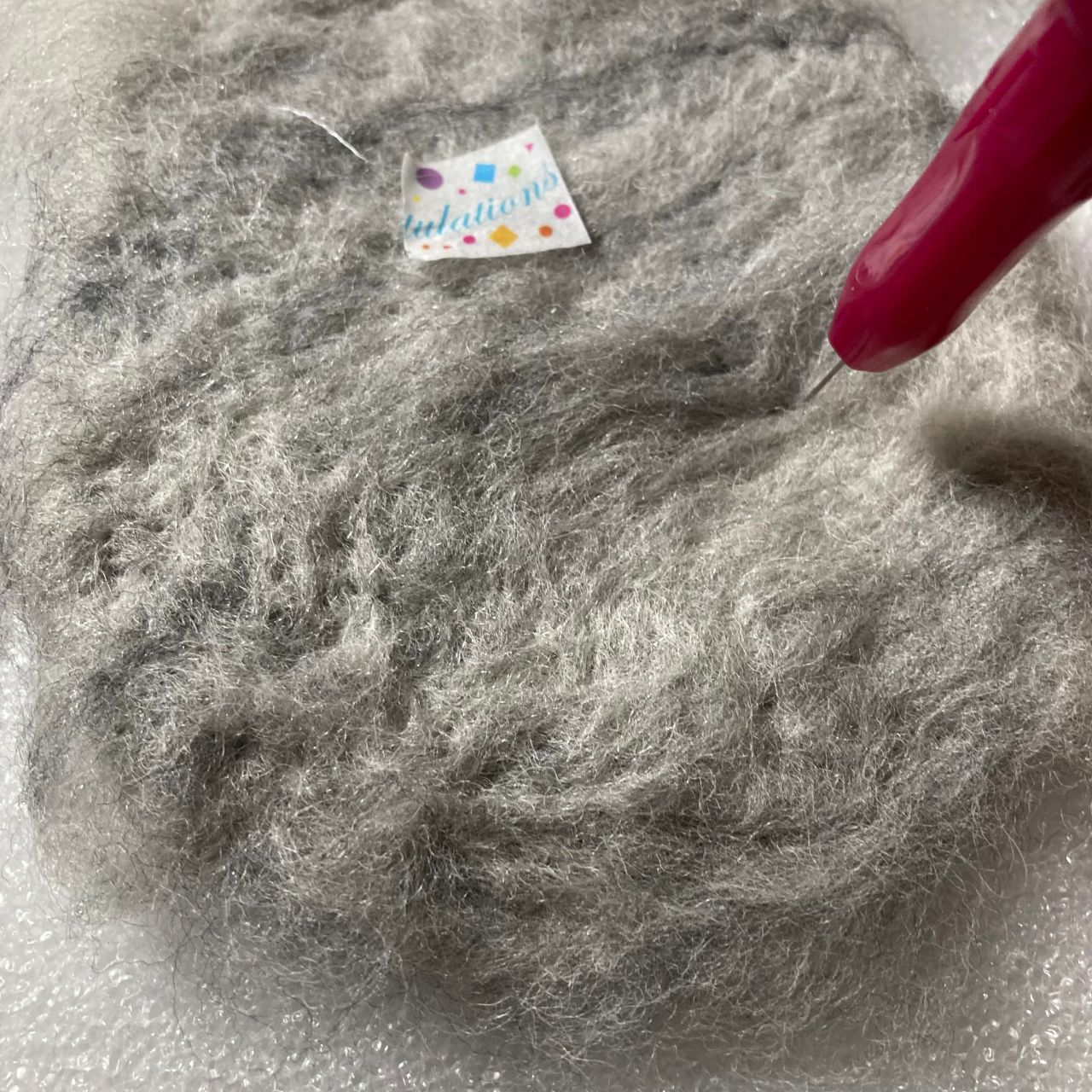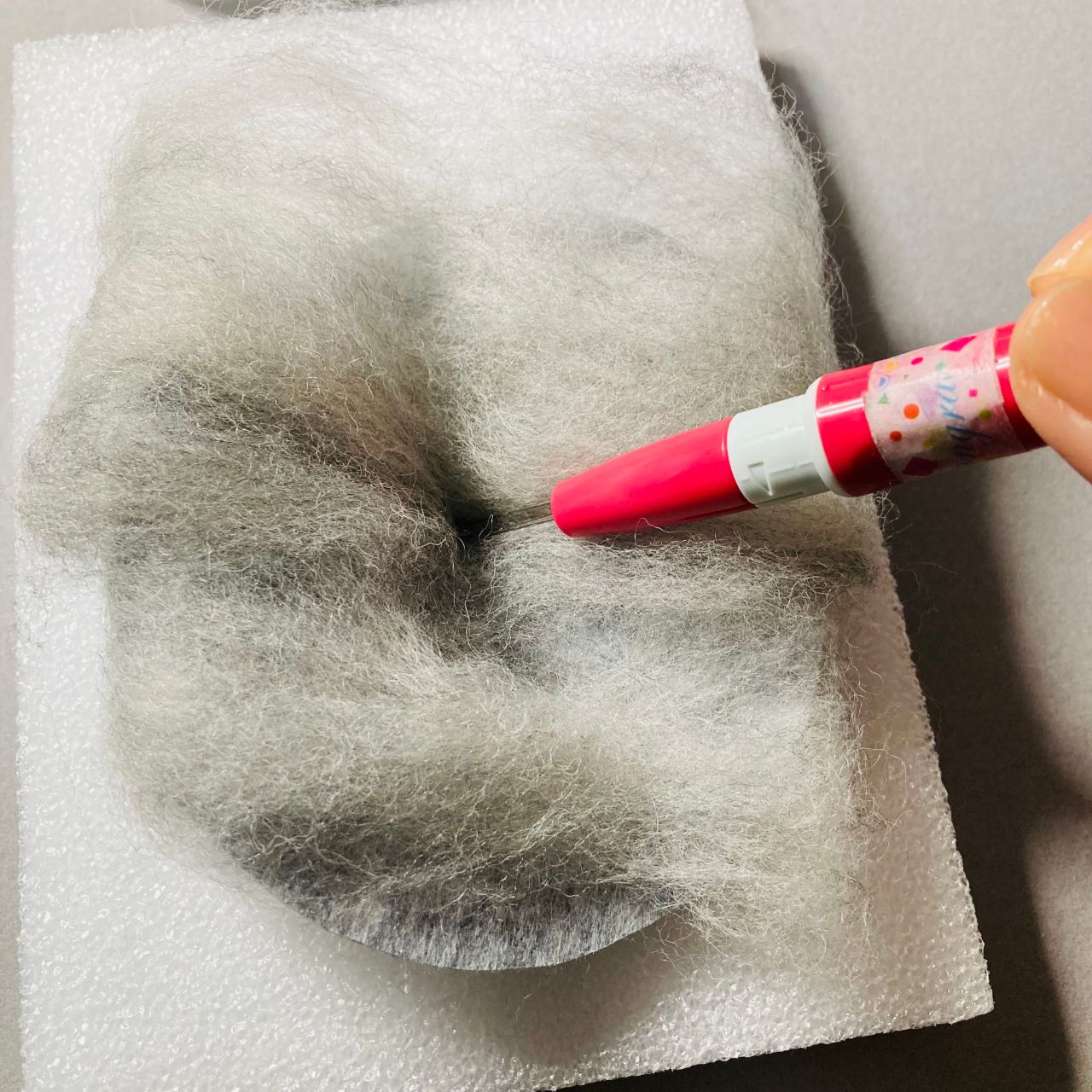 3. シートフェルトの上に1.でカットしておいた羊毛を乗せてニードルを刺していきます。