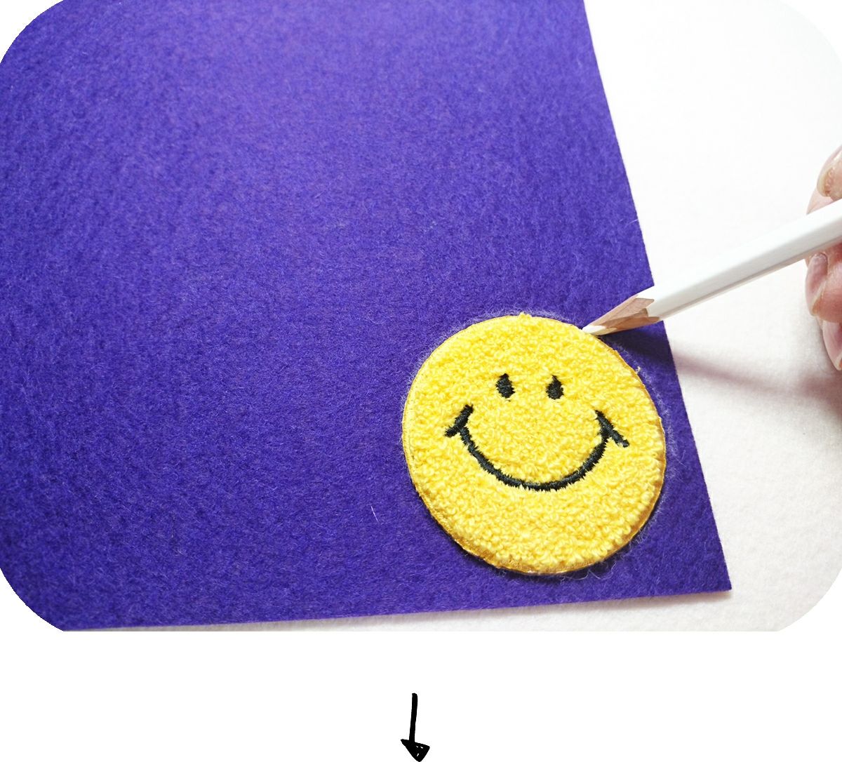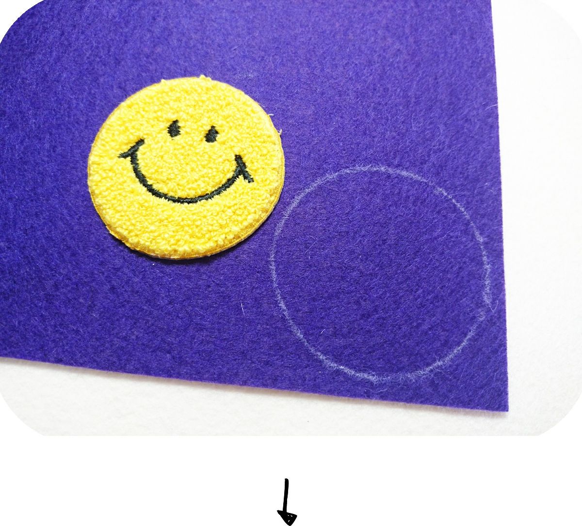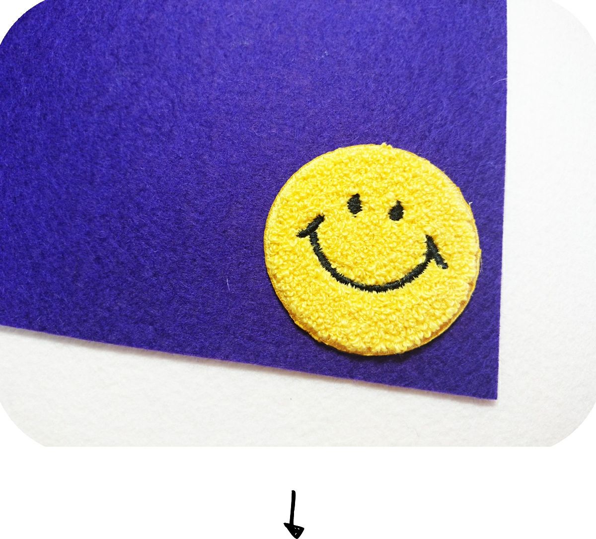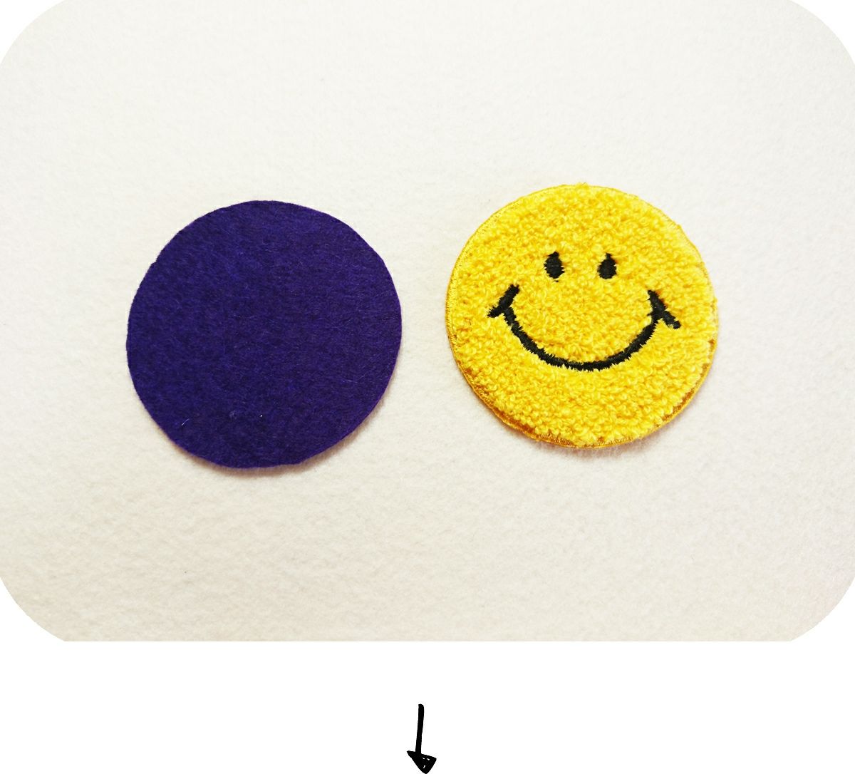 ①、フェルトにパイルワッペンを乗せる。