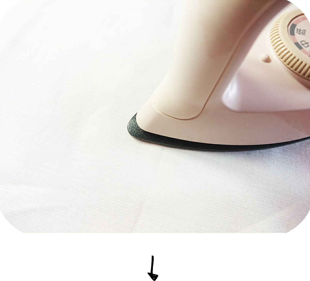 ⑤、当て布をしてアイロンでワッペンをフェルトに貼り付ける。