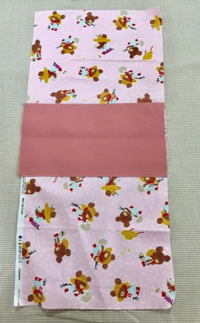 ①柄が一方方向の場合、外表に合わせて底を縫う。縫い代は割ります。外表にすると縫い目が隠れます。