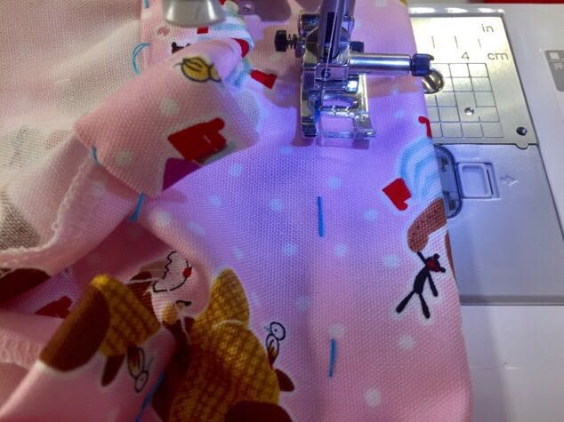 ④紐通しを予めつけて脇を縫います。