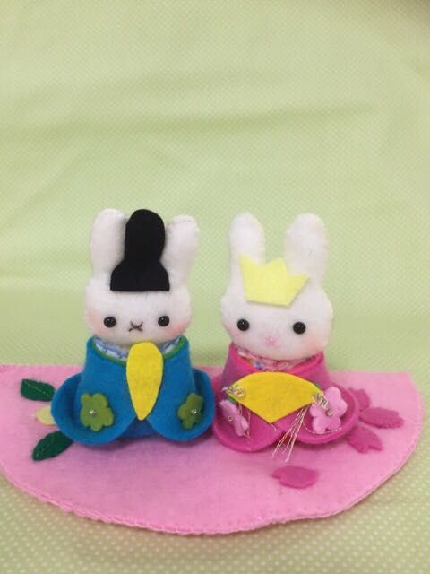 もうすぐ雛祭りですので、うさぎのお雛様をフェルトで作ってみました。