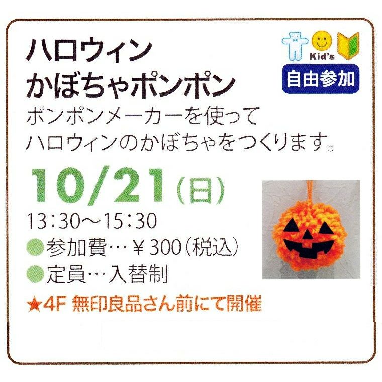 本日はハロウィンのオーナメントで大活躍間違いなし!のハロウィンかぼちゃポンポンの講習会のご案内です(^o^)/