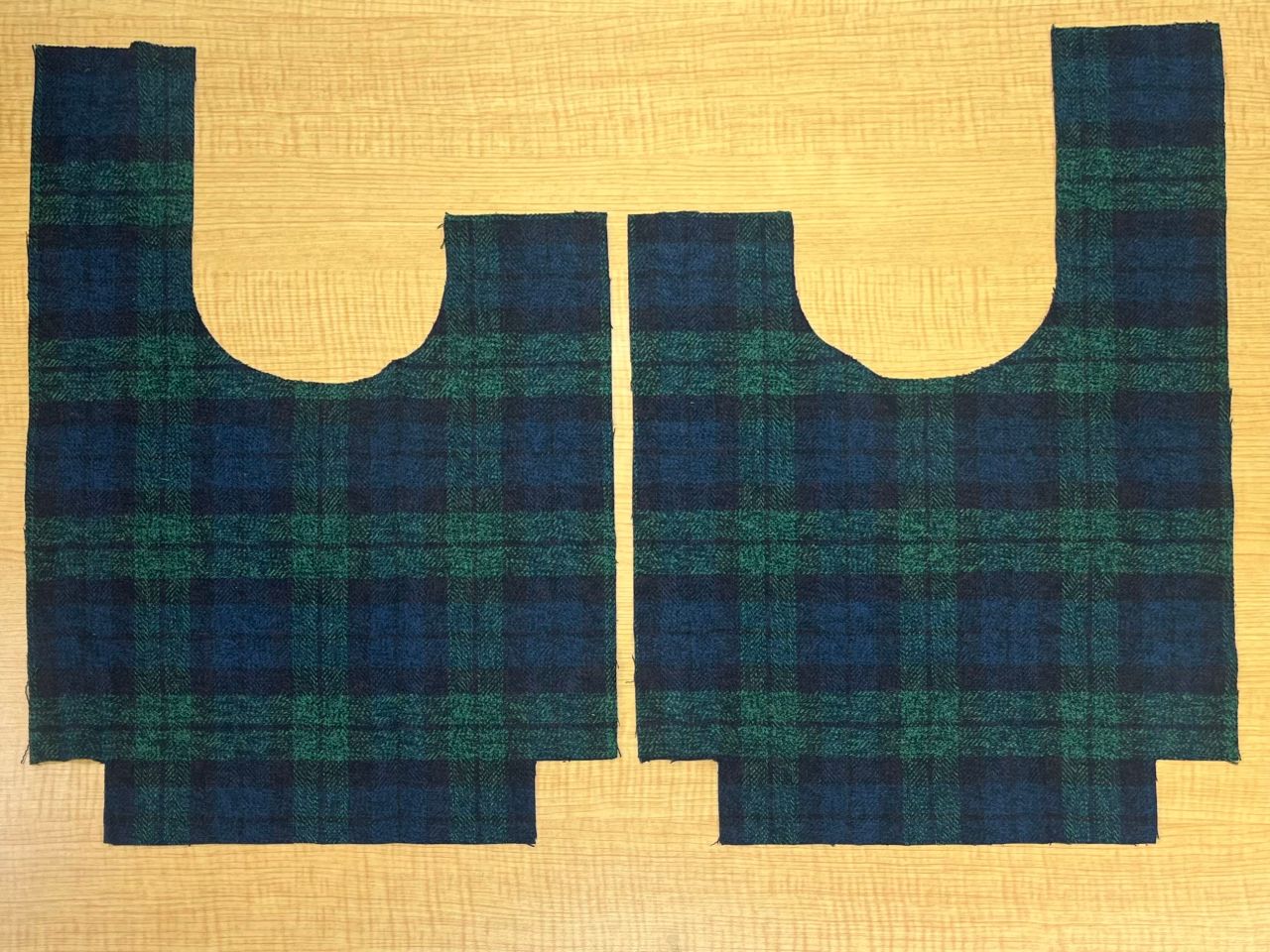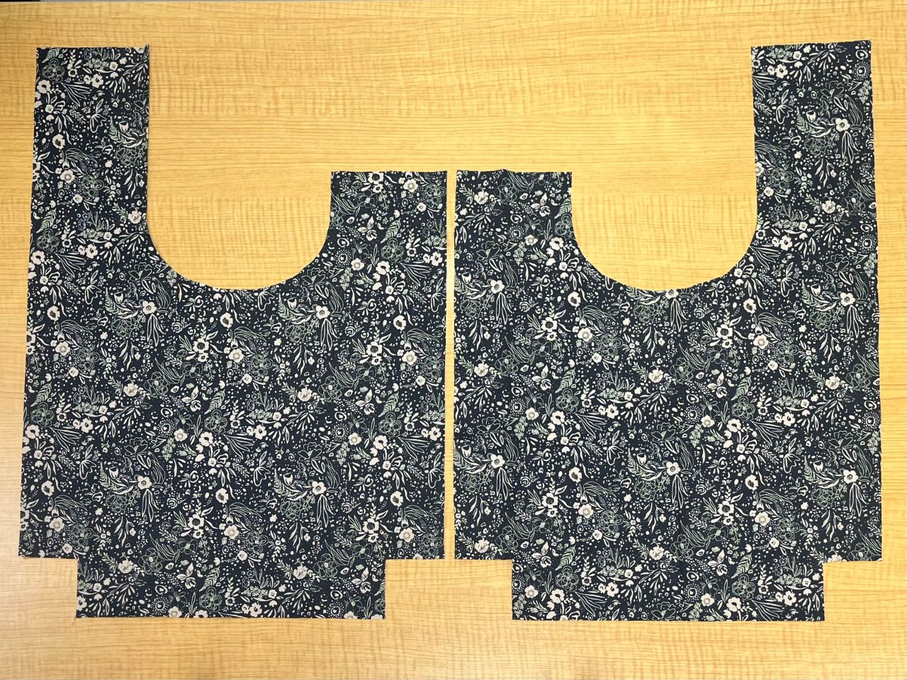 ①表生地と裏生地を下の写真のようにそれぞれ左右対称に2枚ずつ裁断します