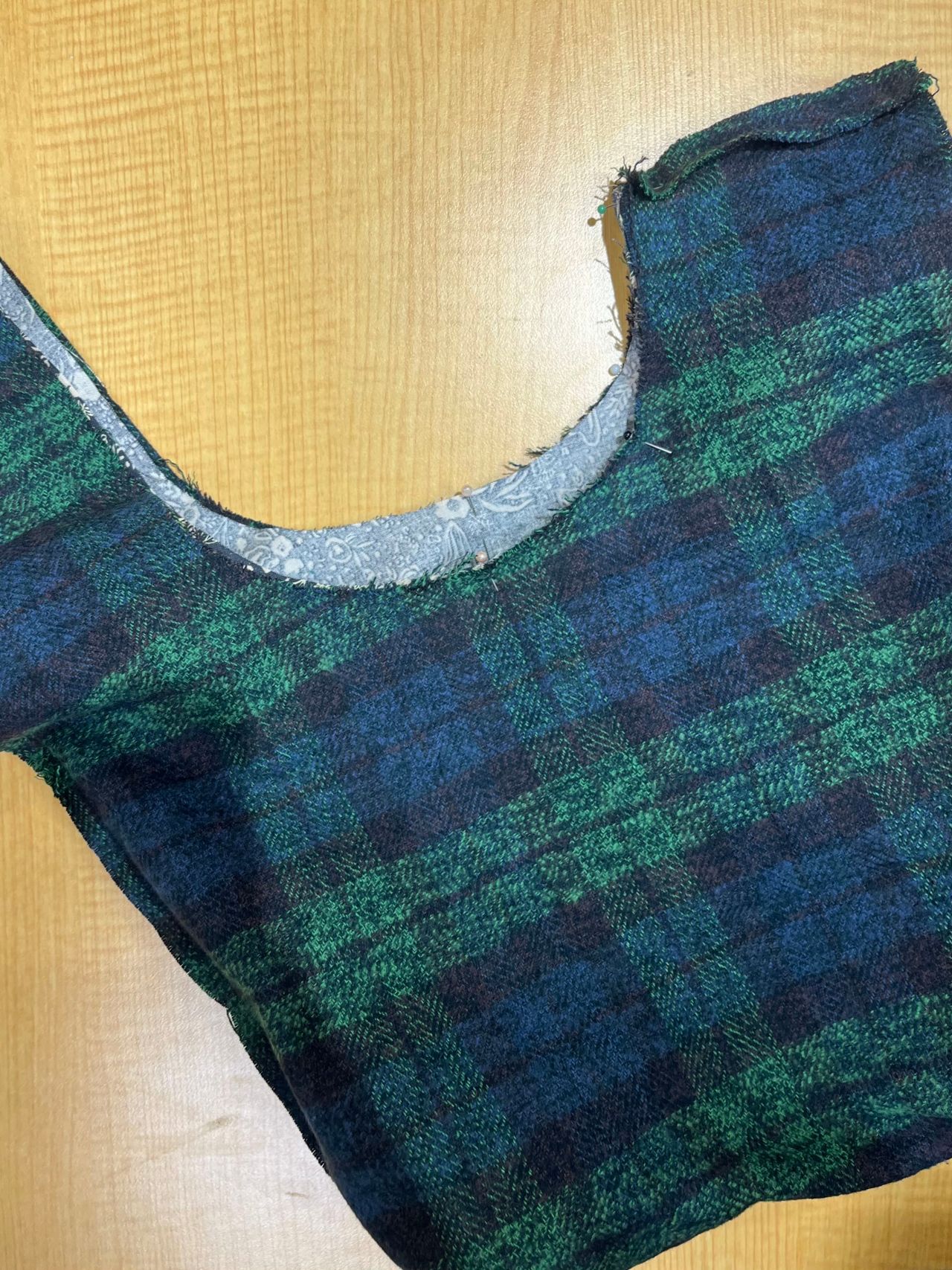 ②表生地と裏生地をそれぞれ中表に縫い合わせます