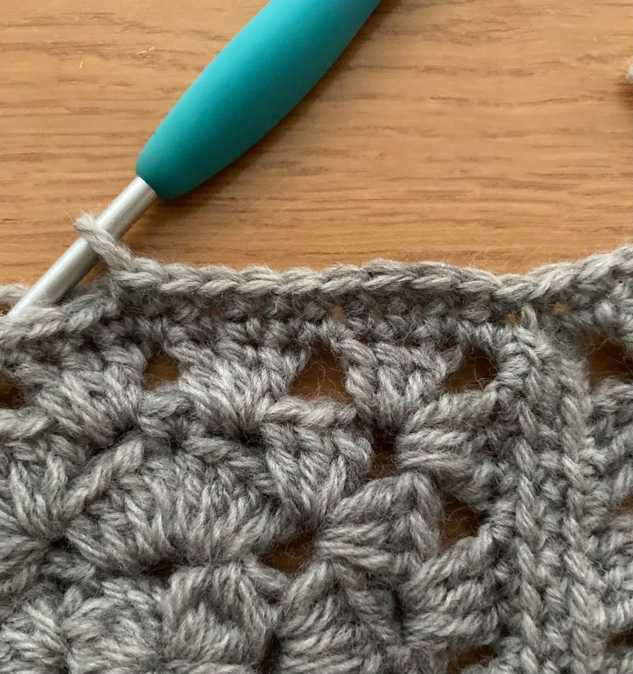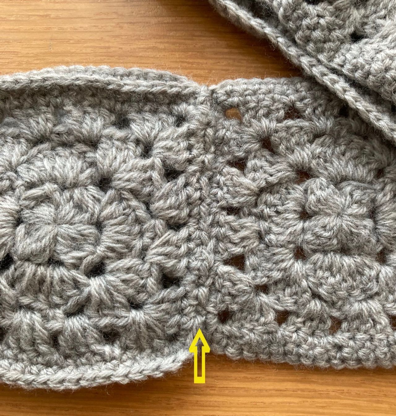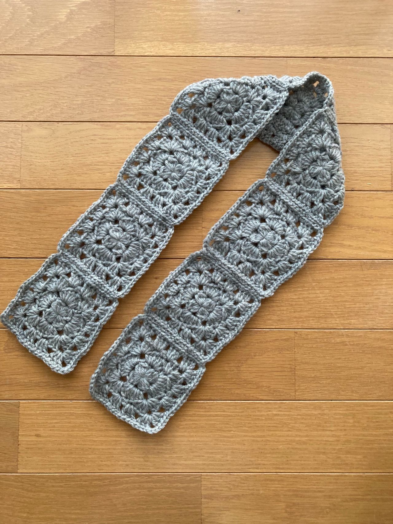 人気の四角いモチーフ「グラニースクエア」をつなげでプチマフラーを作ってみました。