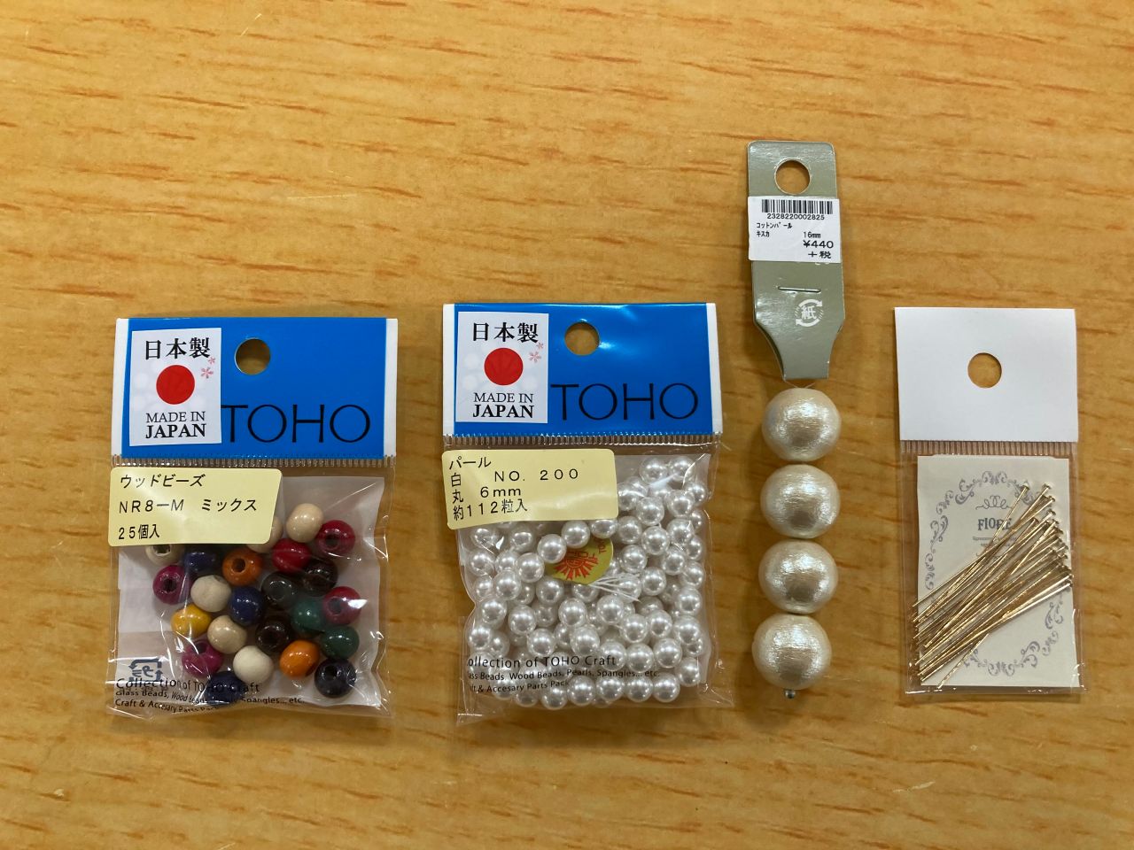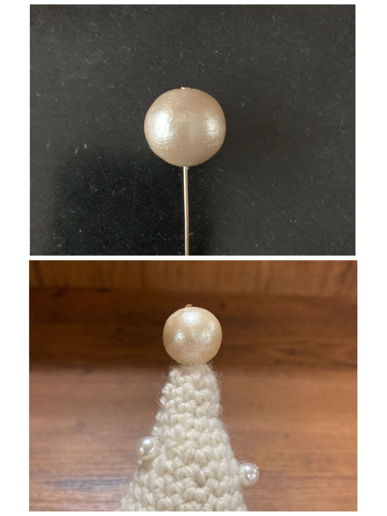 ⑧コットンパールにTぴんを通し、トップにつけ、完成