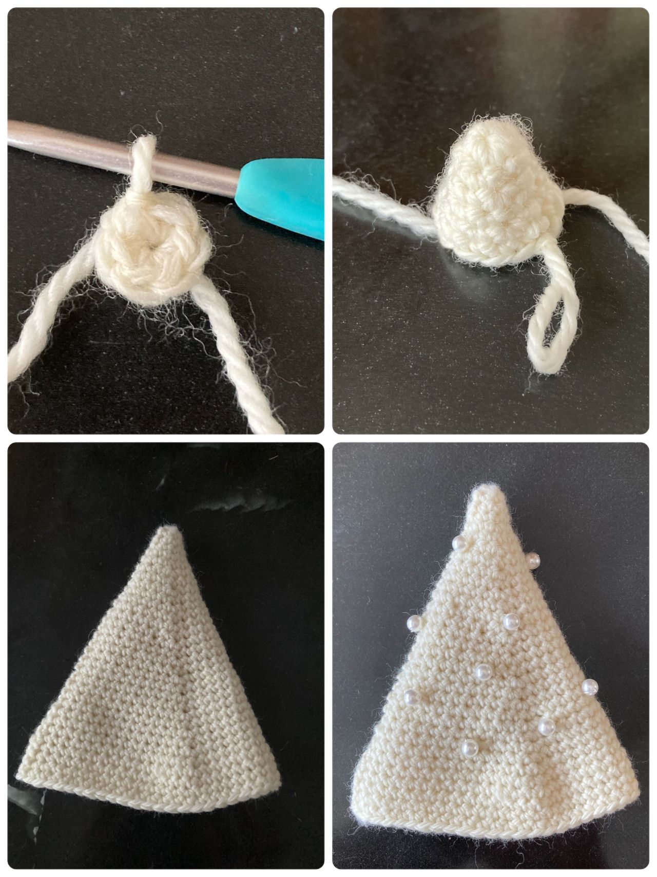 ②2段目は増し目なし→3段目は3目増やす→4段目は増し目なし