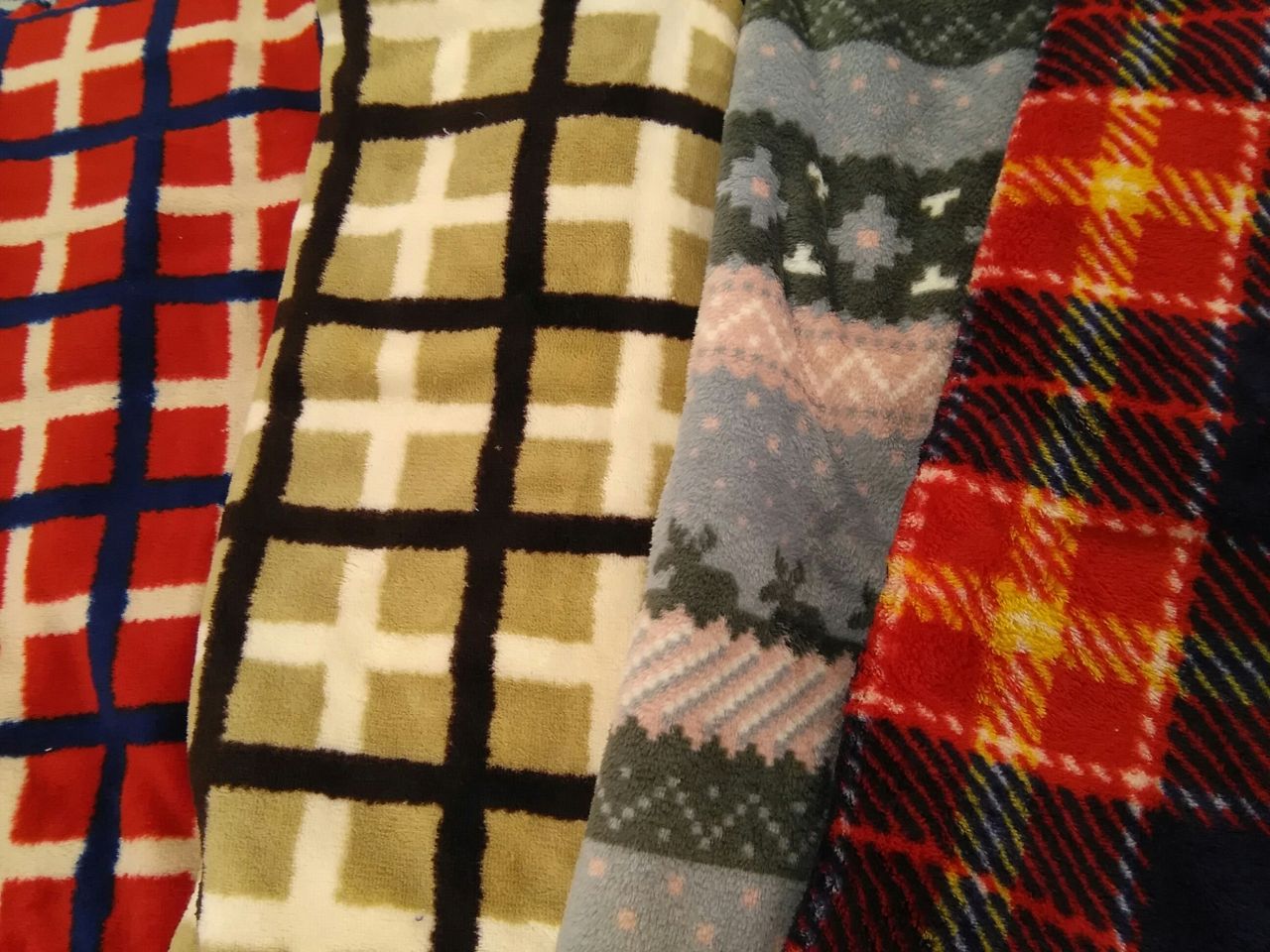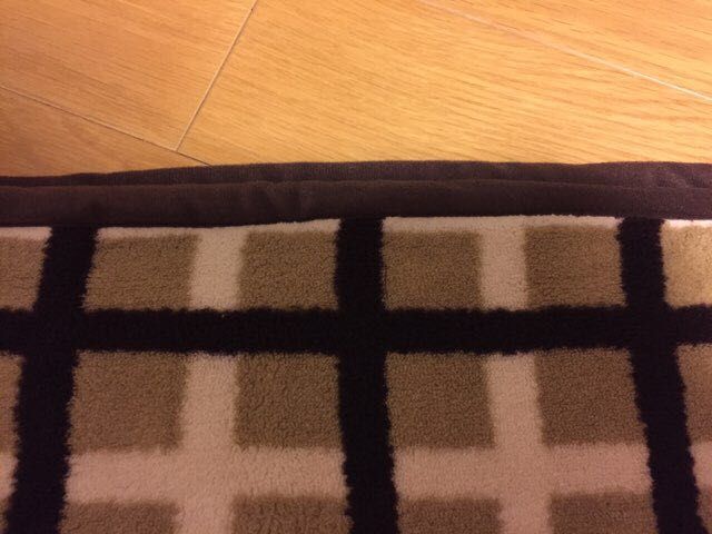 ふちどりフリーステープで周りを始末したひざ掛けが
