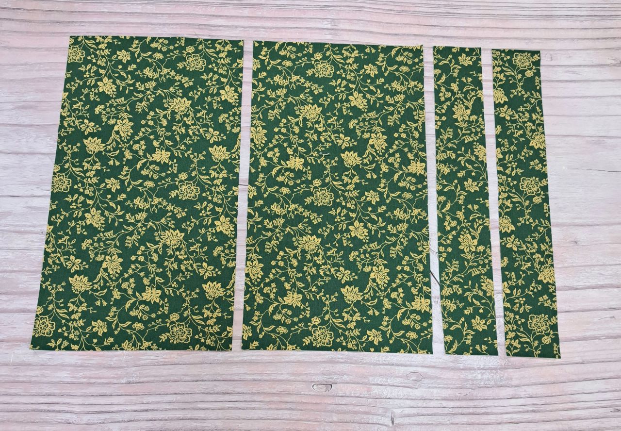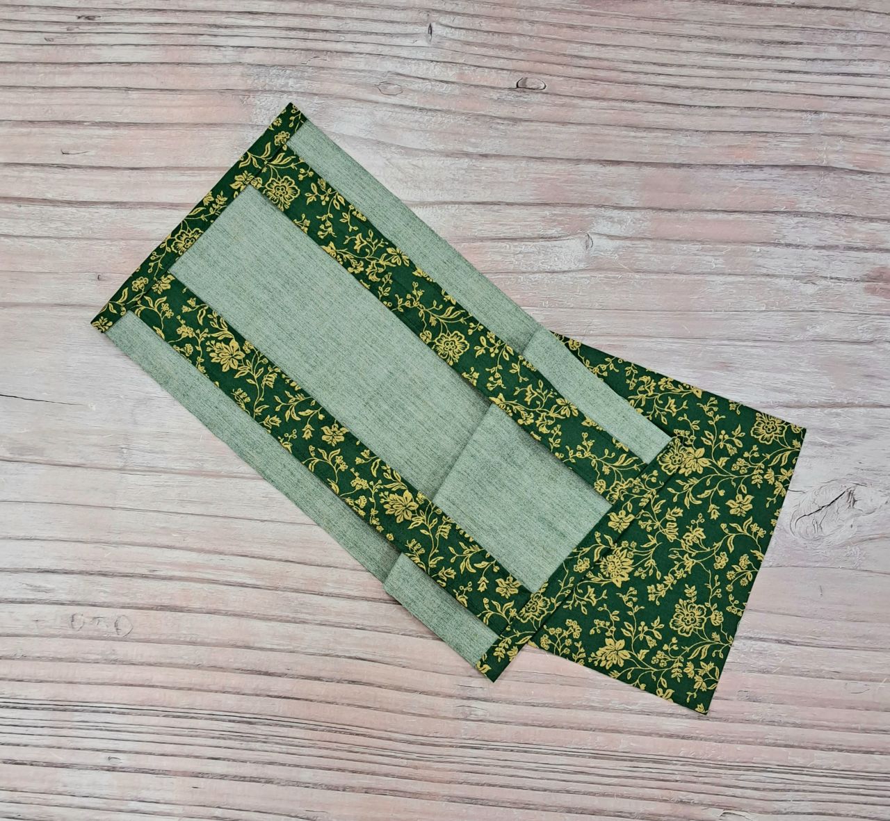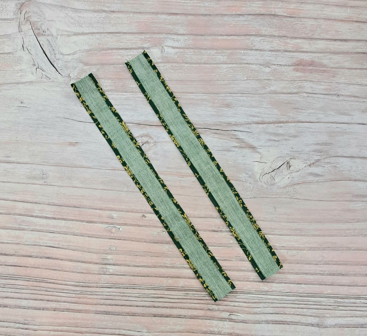 ②持ち手のパーツを5mmの三つ折りし、アイロンをかけます。