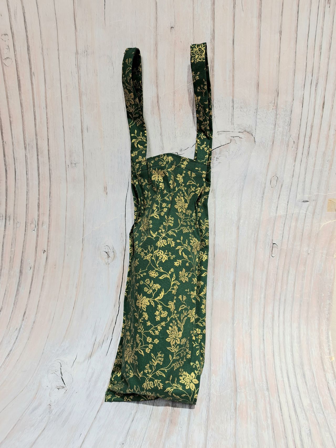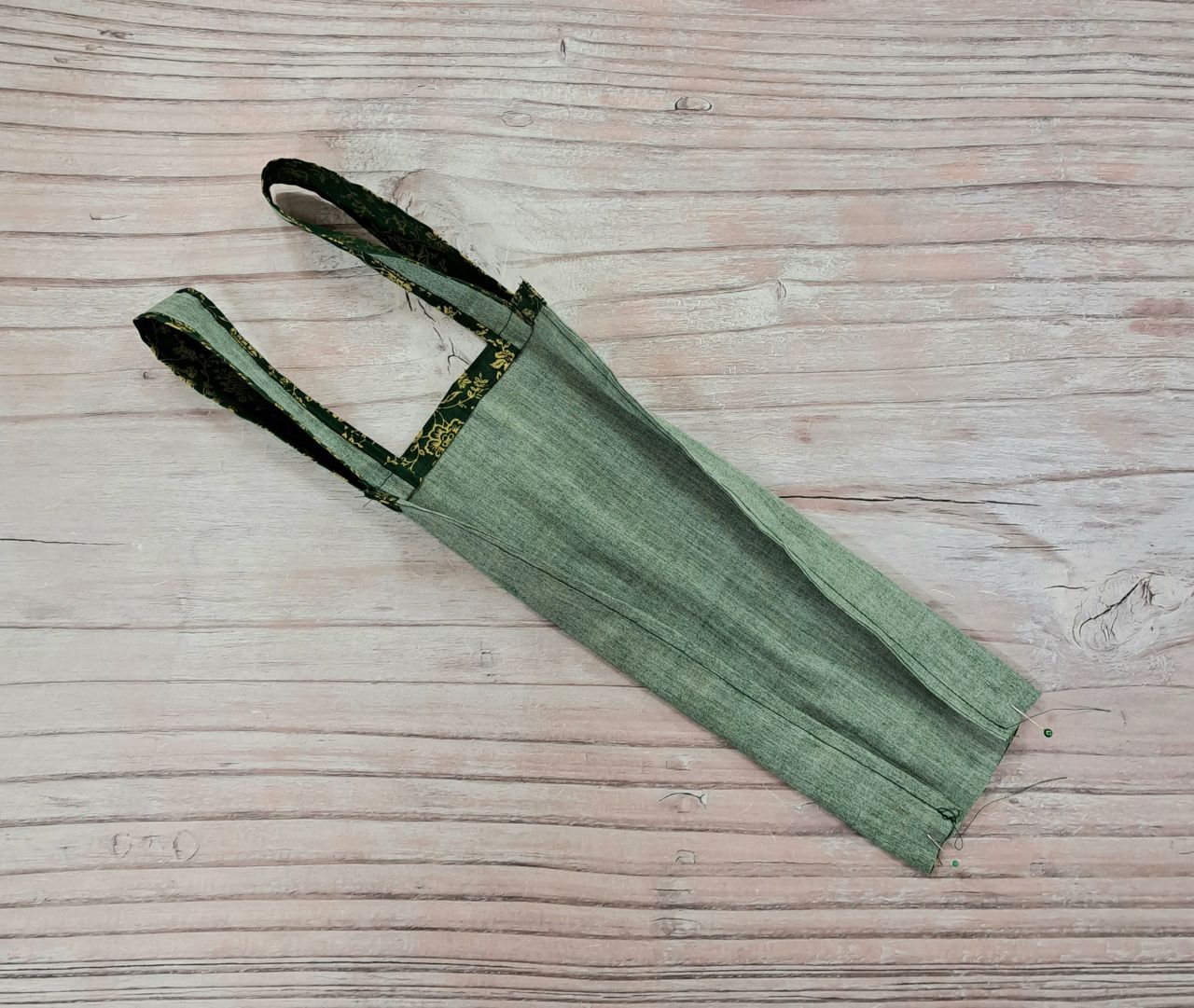 ④袋に縫ったら、サイドを4cm 、内側に折り、底から5mm の位置で縫い、裏返して底を1cm の位置で縫い、持ち手を合わせて上部を縫って下さい。