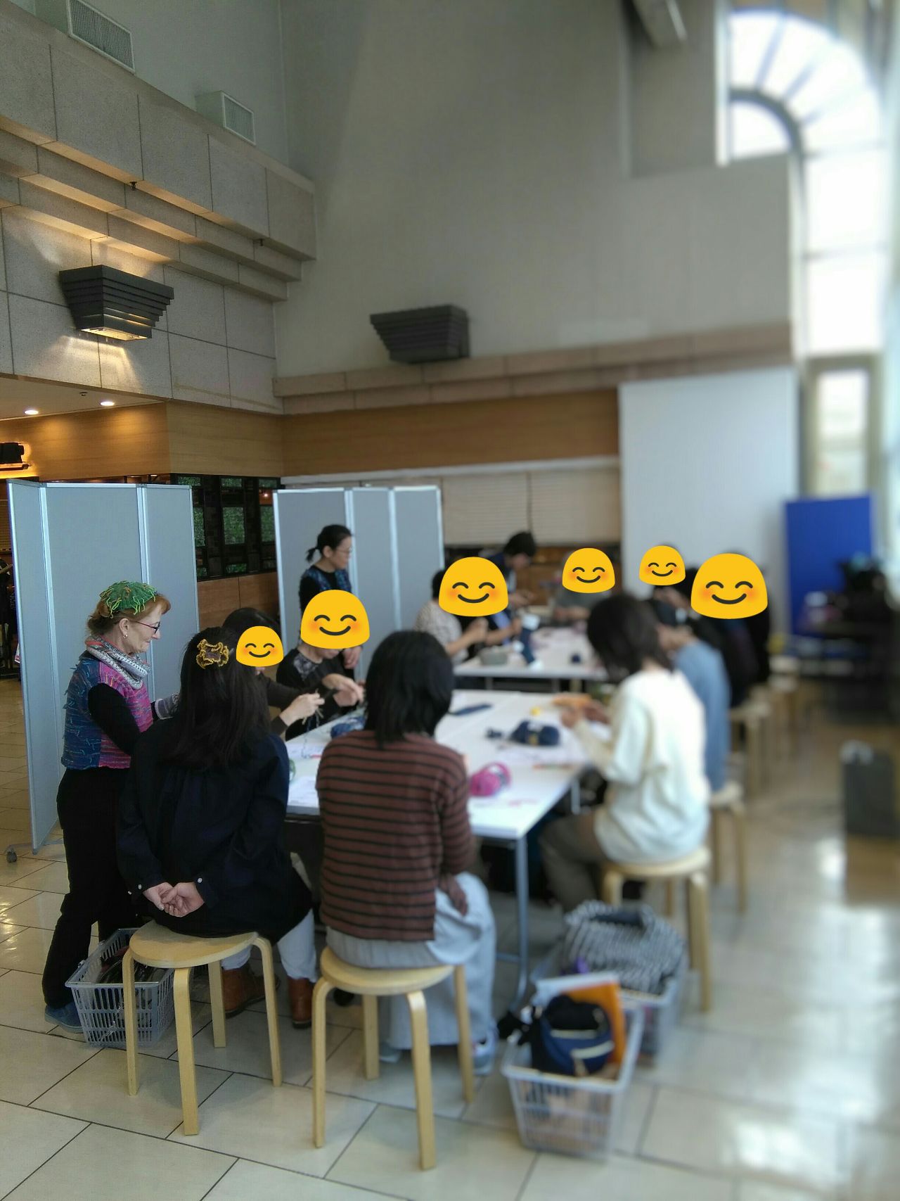 当日はとても良いお天気で大きな窓ガラスから明かりが入り編み物をするのに最高な日でした!