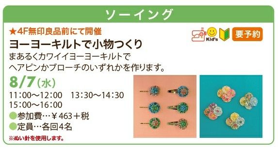 ヨーヨーキルトで小物つくりの講習会のご案内♪