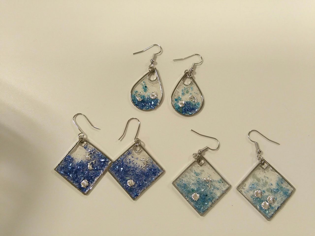 お外は真夏日、という今日、夏にピッタリな海をイメージしたピアスをレジンで作りました!皆さん、初心者とは思えないほどステキな作品に仕上がりました!