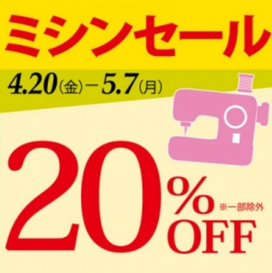 ミシンセールは4月20日(金)から5月7日(月)まで。