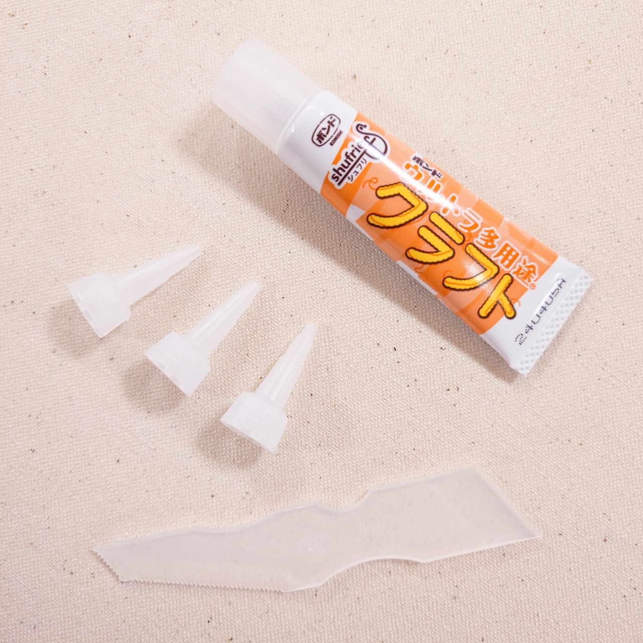 細かい作業にはこの細口ノズルが大活躍です。透明なボンドで水に強く、すばやく接着!