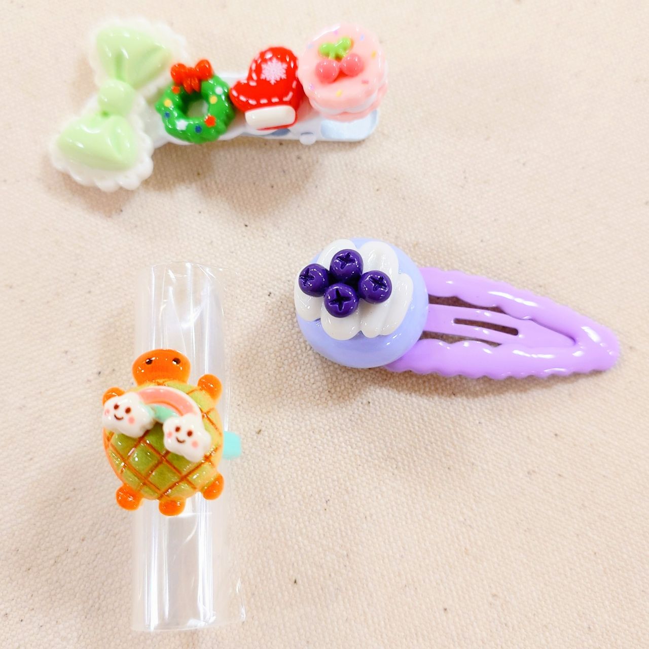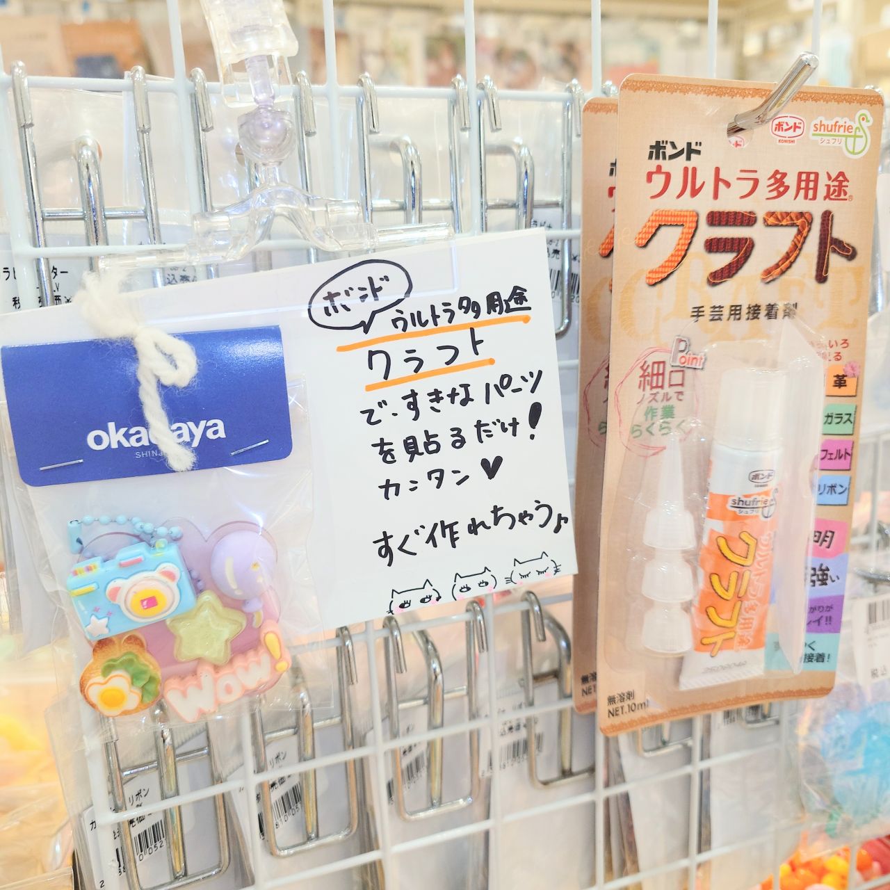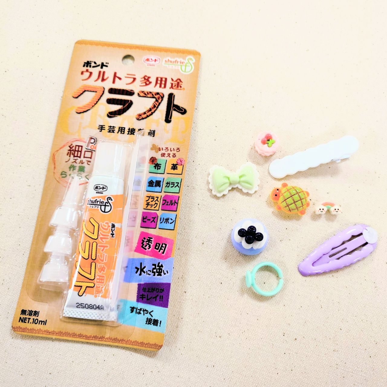 デコパーツの新商品が入荷してきたので、ささっとボンドを貼るだけで作れるアクセサリーのご紹介です。