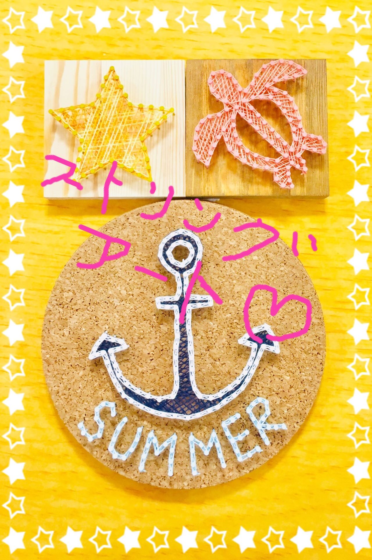 お子様の夏休み手芸にももってこい♡な手芸です!イラストを描いてオリジナルなストリングアートならみんなの注目を集める事間違いなし☆
