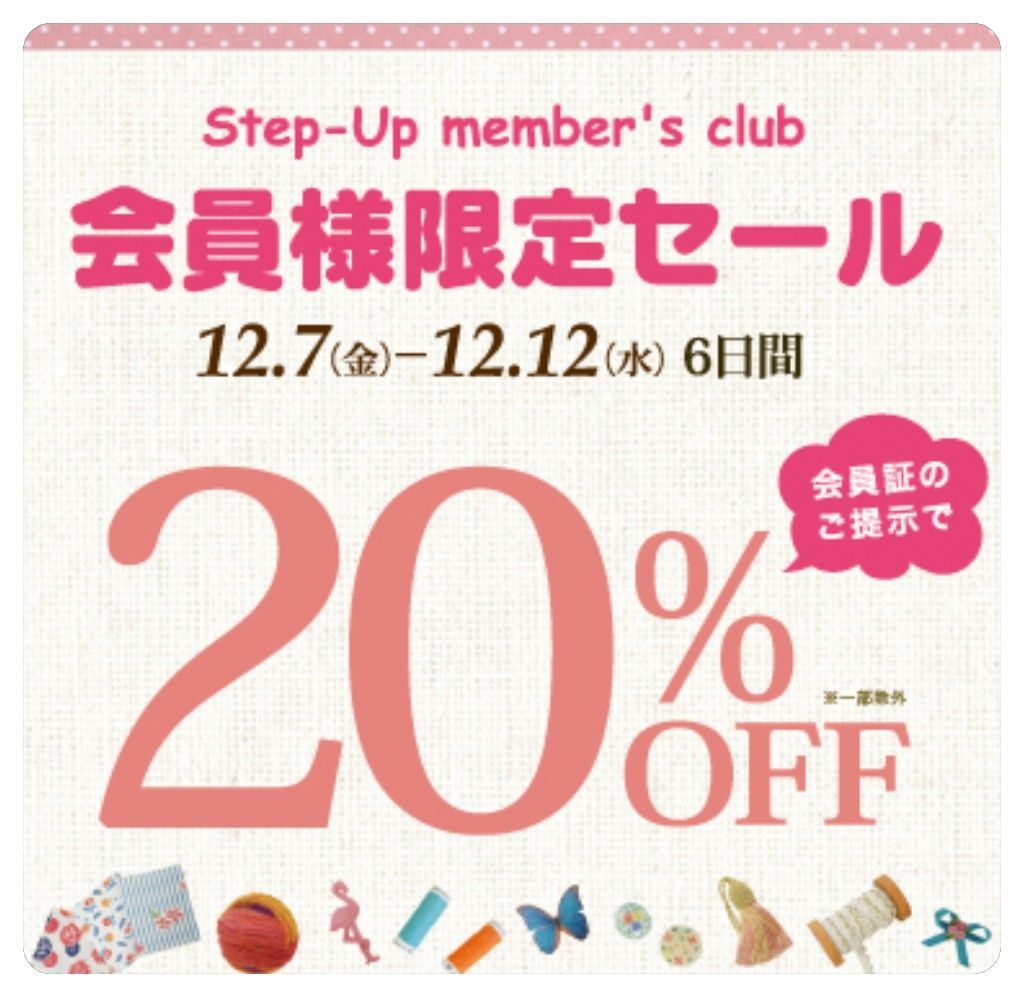 明日!12/7(金)から!会員様限定 全品20%OFFセール始まります♪