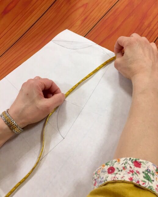 長さが同じになる様にします。袖山の長さを計り、見頃のアームホールの長さと同じになっていることを確認します。