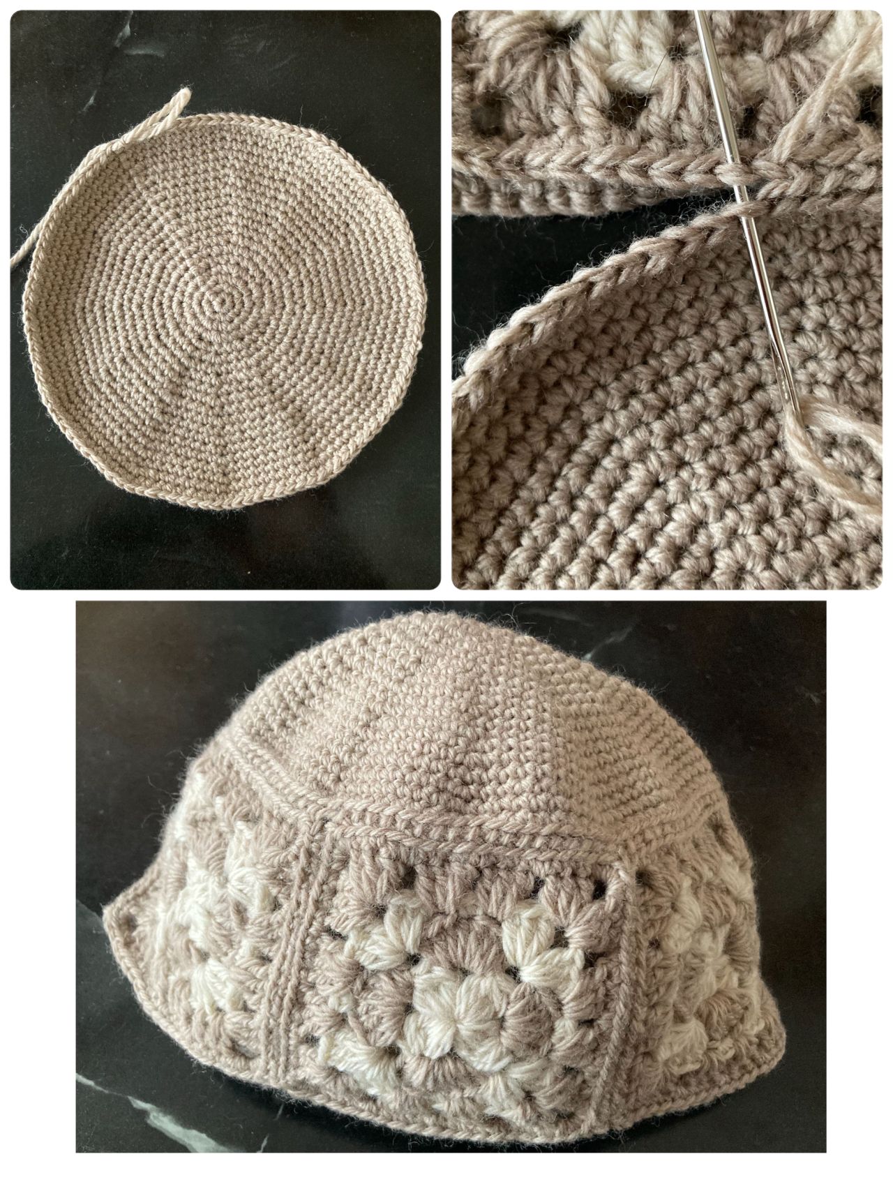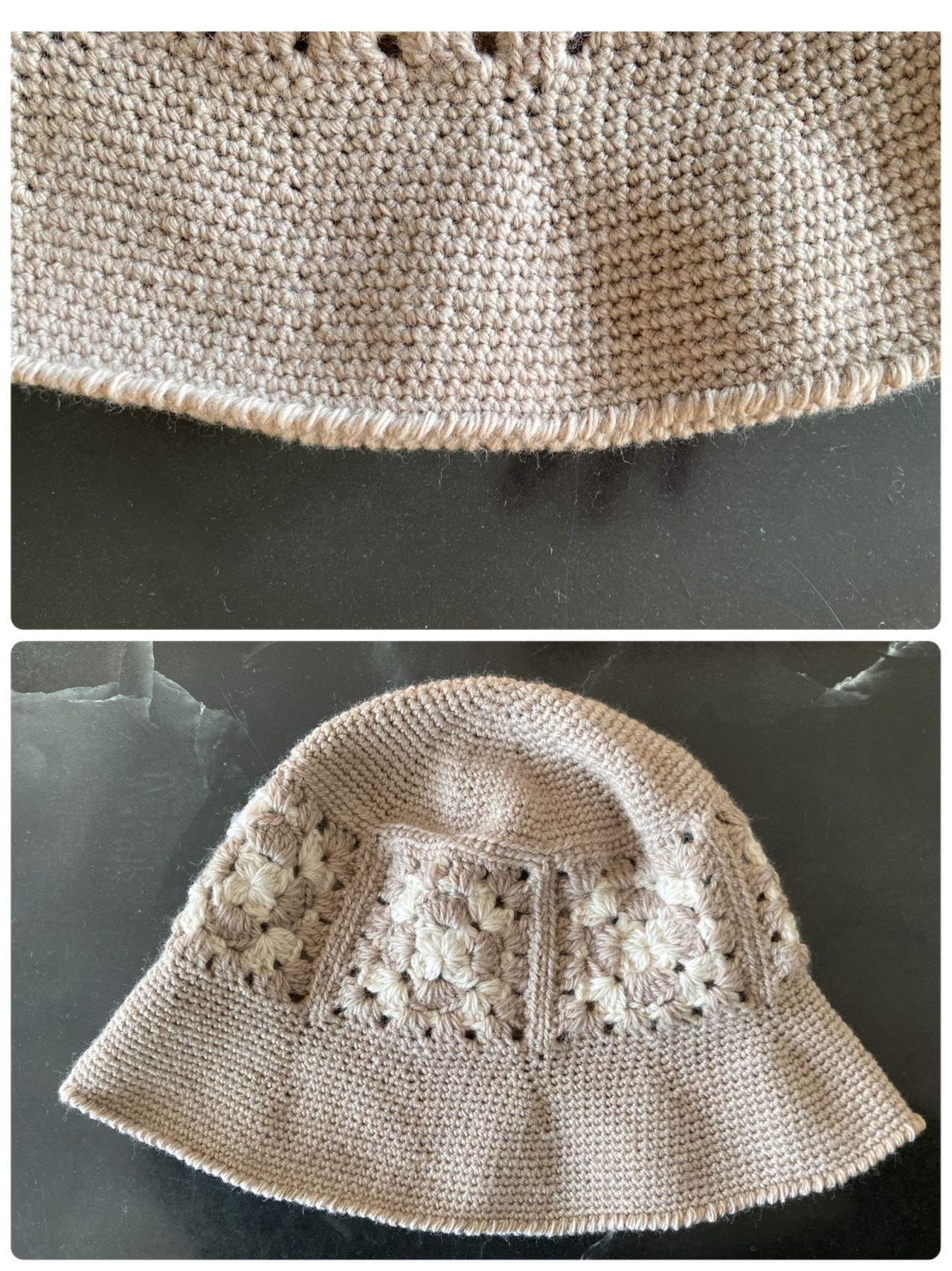 サイドのモチーフ編みがポイント♫【スタンダードメリノ】で編むバケットハット【かぎ針編みの帽子】