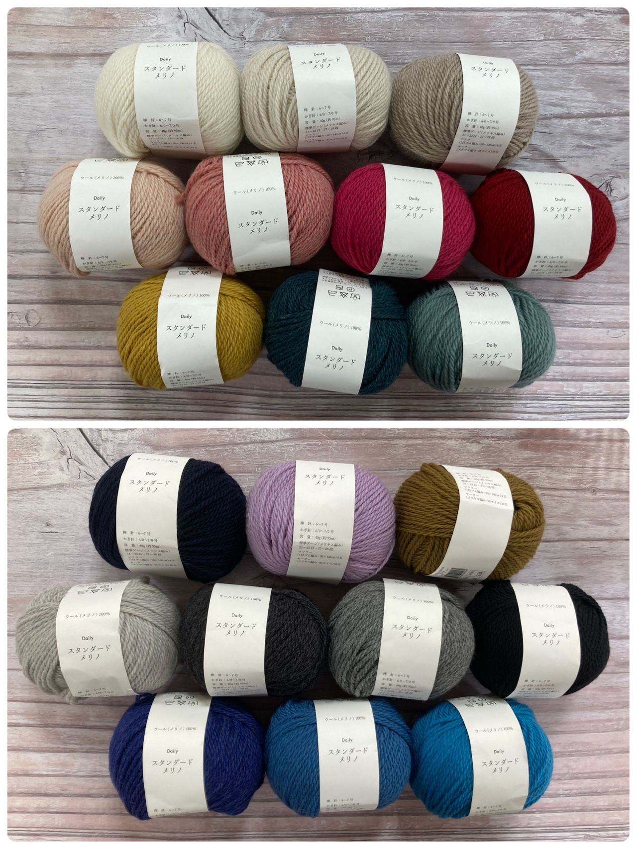 こちらの毛糸は、並太程度の太さのソフトでやわらかな肌触りが特徴です。