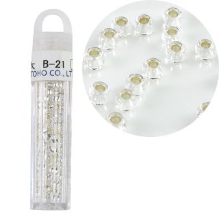 8. 襟足に周る部分はパール中を通して、あとはひたすら丸大ビーズシルバーを通していく。パールからパールまで約20cmとなるようにする(お好みで長くしたい方は丸大ビーズを増やす)