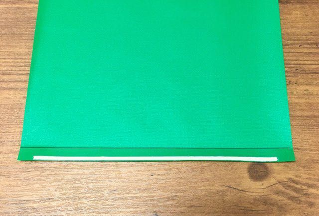 上下の際ギリギリに両面テープを貼り、1cmに折り返して仮止めする。