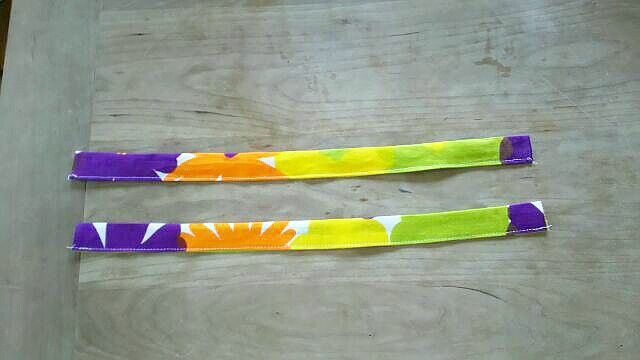①まず、1mの生地から持ち手7㎝×2本を切り取ります。